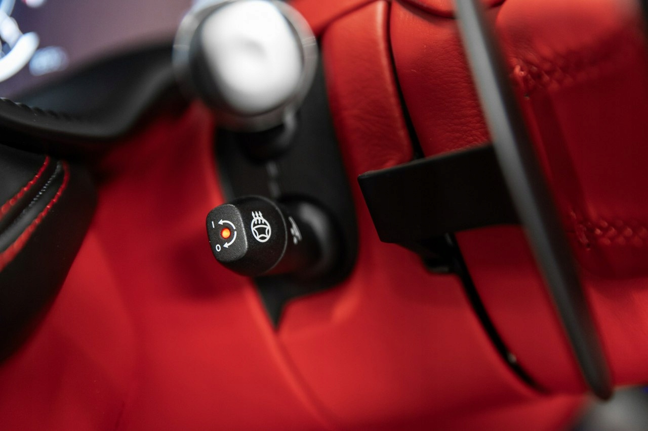 Інтер'єр: шкіряна оббивка гострого червоного/обсидіанського чорного кольору.
