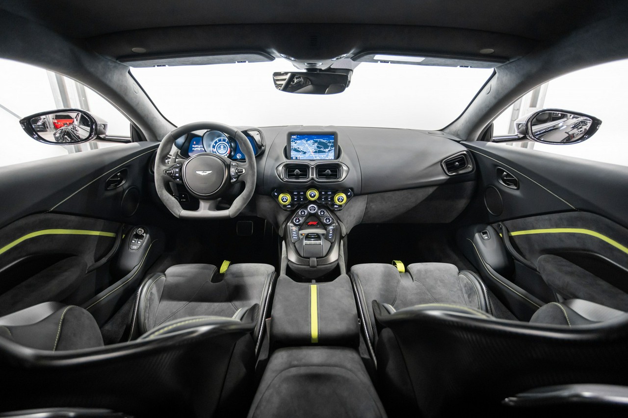 Ason Martin Vantage F1 Edition, він має кілька удосконалень, продуктивність, що відрізняє його від стандартного виду. Найшвидший і найточніший спортивний автомобіль в Астоні Мартіна. Алькантара, розбитий зеленим зшиванням і вставками.