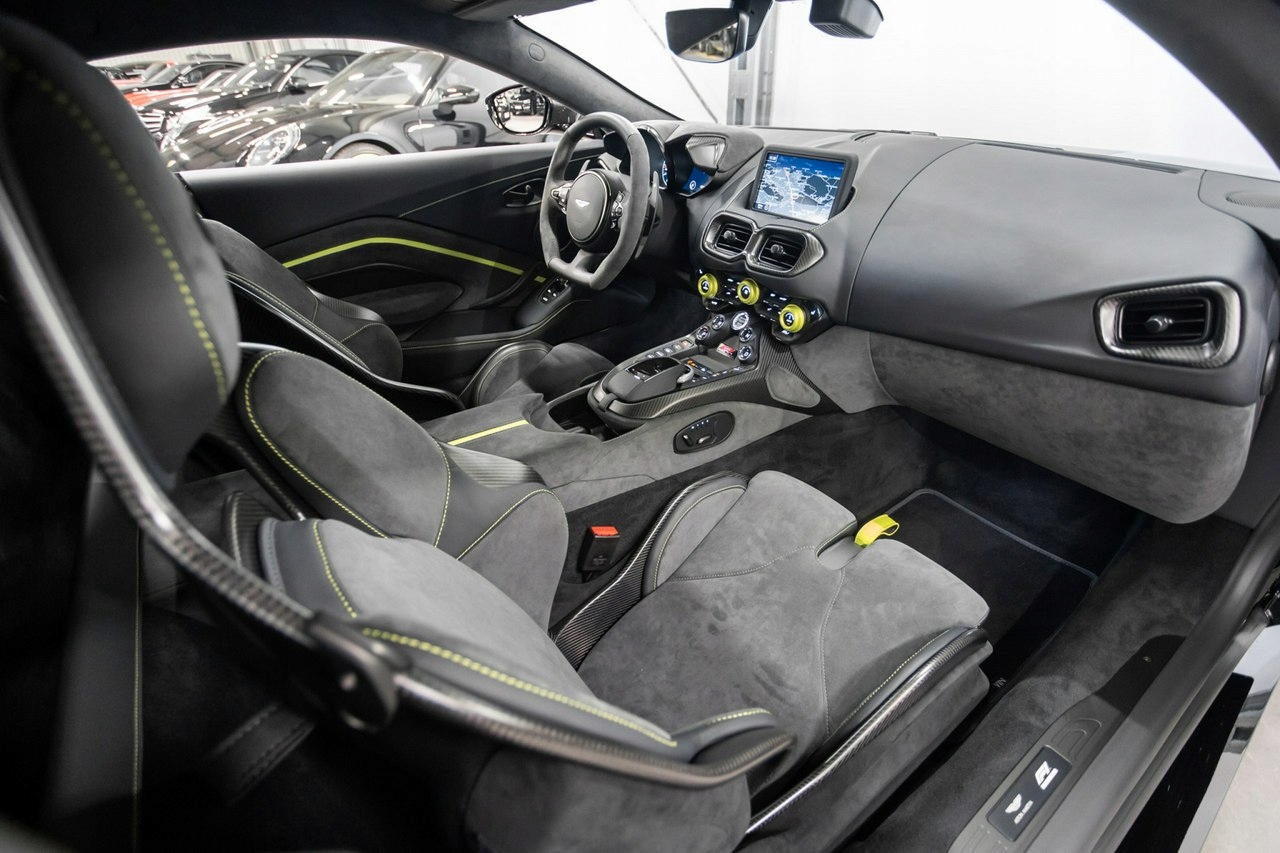 Ason Martin Vantage F1 Edition, він має кілька удосконалень, продуктивність, що відрізняє його від стандартного виду. Найшвидший і найточніший спортивний автомобіль в Астоні Мартіна. Алькантара, розбитий зеленим зшиванням і вставками.