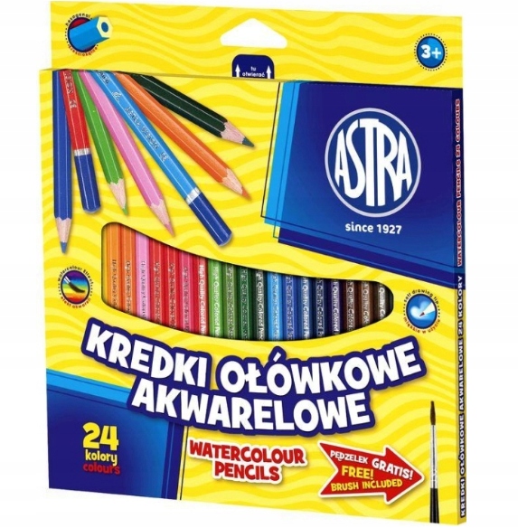Astra kredki ołówkowe akwarelowe 24 kolory + pędzelek