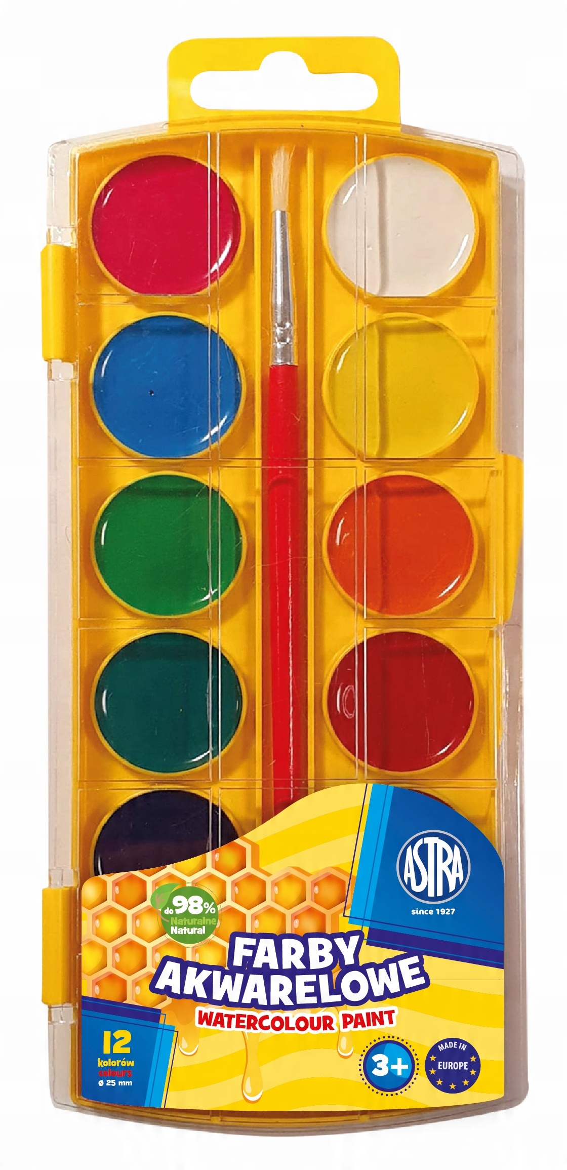 - Акварельні фарби Miodowe Astra 12 кольорів - діаметр 25мм з європідвісом