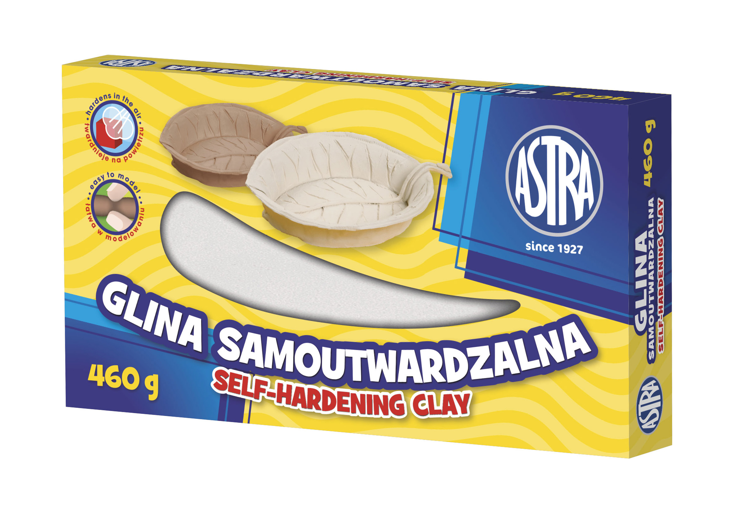 Самопохитна глина готова до використання з пластиковою масою, яка затверджується в повітрі. Самопохитна глина найкраще підходить для виконання невеликих скульптурних форм. Ви можете робити повні форми, такі як: фігурки, миски, декоративні тарілки, рельєфи на плитці та ювелірні вироби (підвіски, намистини, брошки). На гладких поверхнях ви можете легко натиснути різні візерунки. Час сушіння готової продукції залежить від їх товщини та умов сушіння. При необхідності глина слід змочити водою для відповідної консистенції. Предмети, виготовлені з глини, що займаються самостійною, після висихання ви можете малювати фарбами Astra.