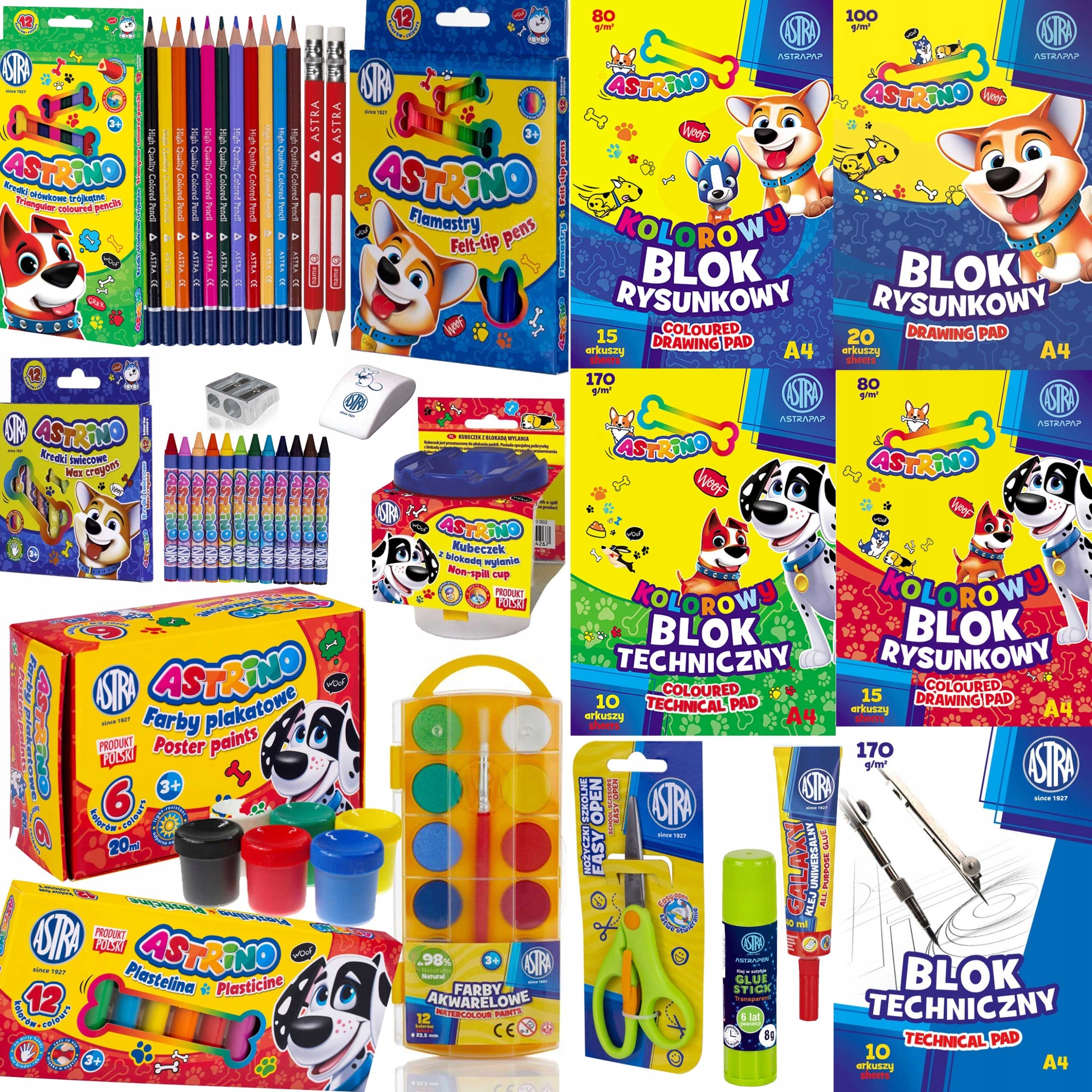 ☑️Дуже великий, повний набір основних товарів для творчості на основі продукції Astra. Це ідеальне рішення для комплектації шкільного ліжка для дитини