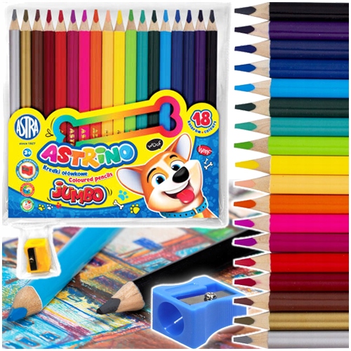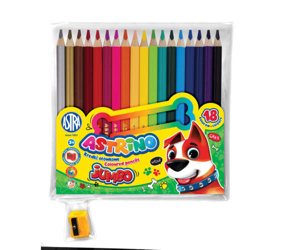 ASTRINO JUMBO PENCIL ОЛІВЦІ 18 ІНТЕНСИВНИХ КОЛІРІВ ASTRA + ТОЧИЛКА
