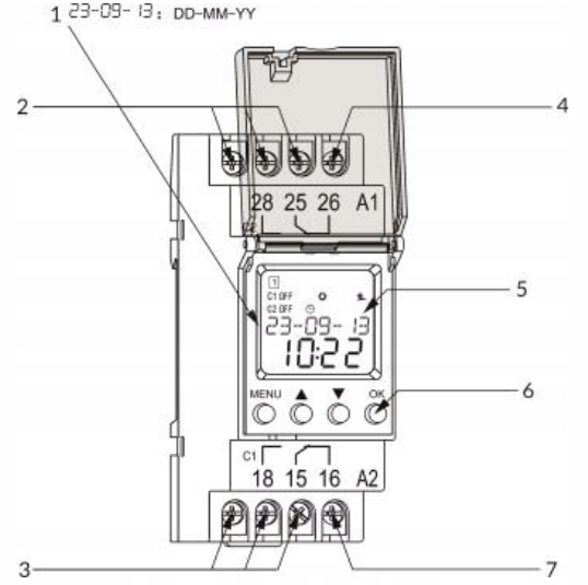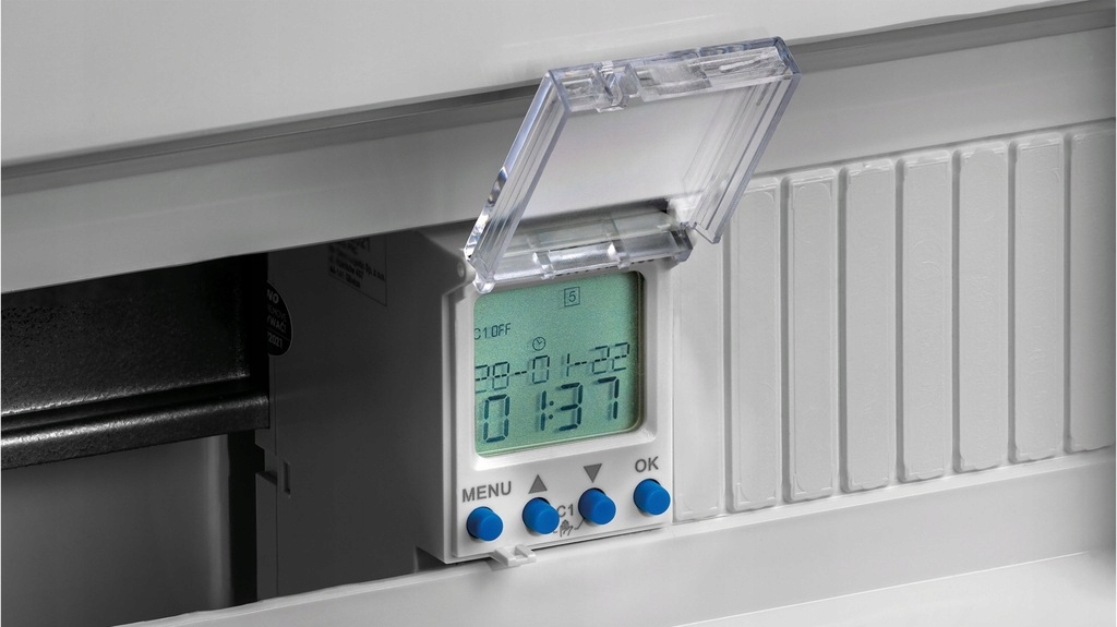 ПРОГРАМАТОР ЧАСУ НА DIN-РЕЙКУ ДЛЯ УВІМКНЕННЯ ТА ВИМКНЕННЯ ЕЛЕКТРИЧНИХ ПРИЛАДІВ -Багатофункціональний таймер з рідкокристалічним дисплеєм, корисний у кожному домі та на підприємстві, призначений для монтажу на DIN-рейку, ширина 2 модуля.