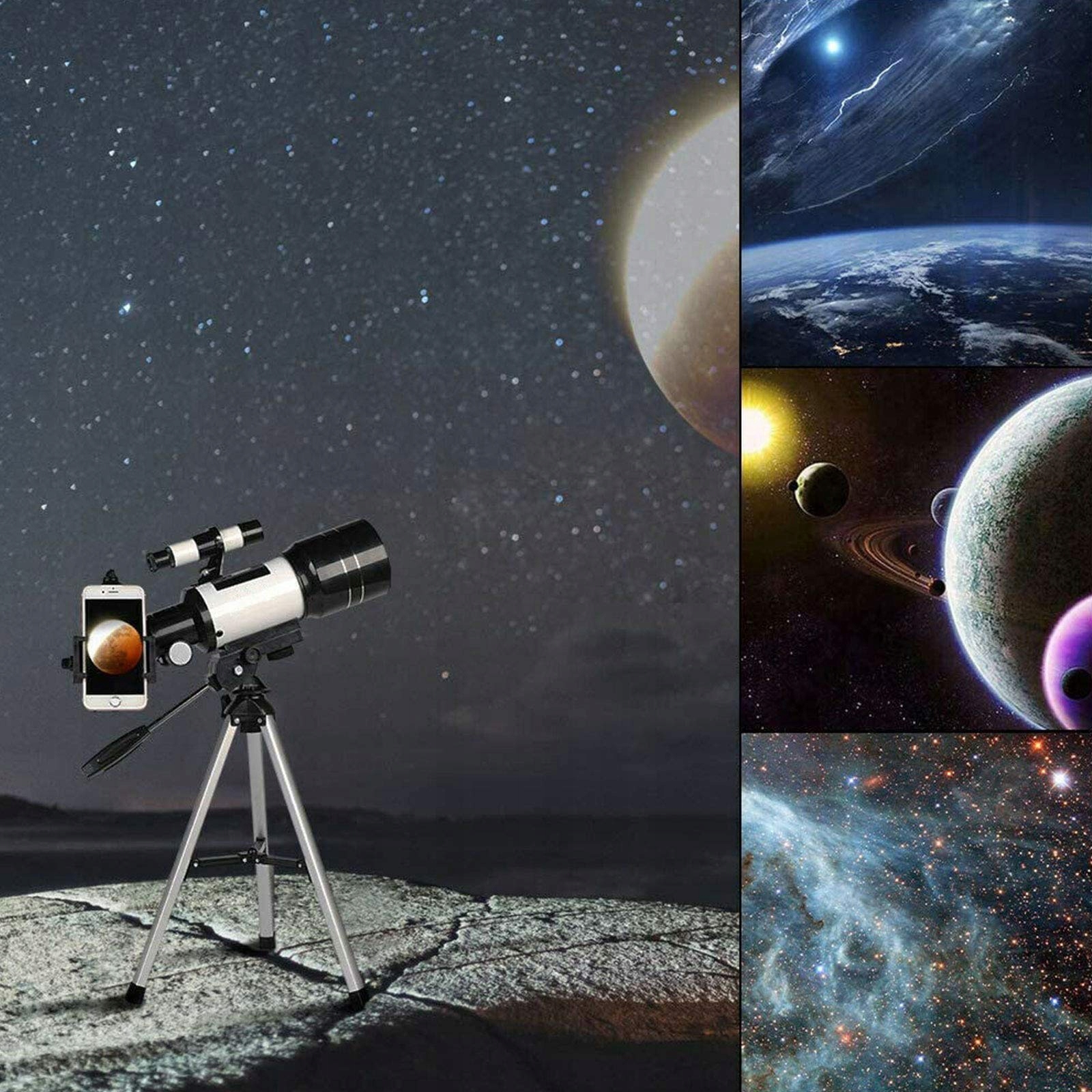 . Цей телескоп дозволяє використовувати багато різних позицій перегляду завдяки регульований штатив із алюмінієвого сплаву, телескоп і штатив поміщаються у вашій сумці для зручності подорожей і зберігання, які можна регулювати для різних положень перегляду. зручно носити під час подорожі.