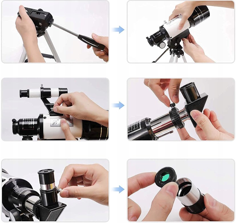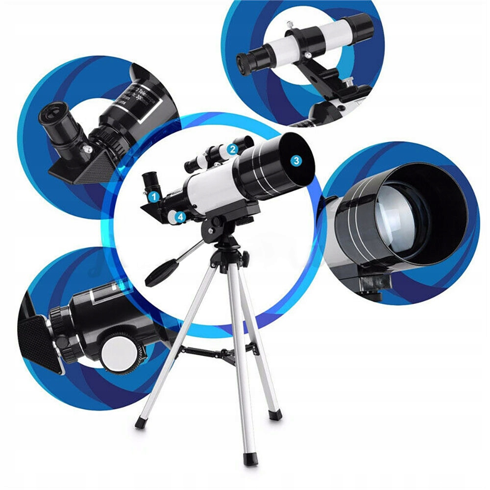 🔭🪐 Астрономічний телескоп: великий діаметр 70 мм, система призм BAK4, фокусна відстань 300 мм, велике поле зору. Лінзи з повним покриттям і високим коефіцієнтом пропускання покращують яскравість і чіткість зображення, придатні для спостереження за полярним сяйвом, місяцем, планетами, метеорами, пейзажами та птахами.