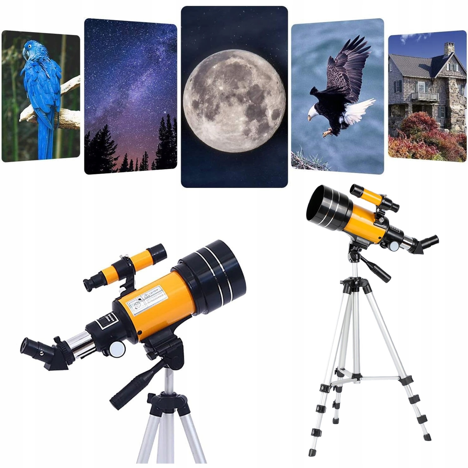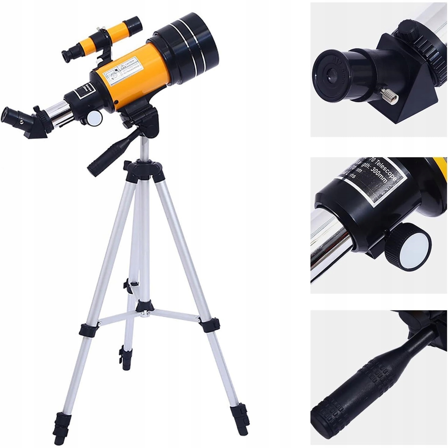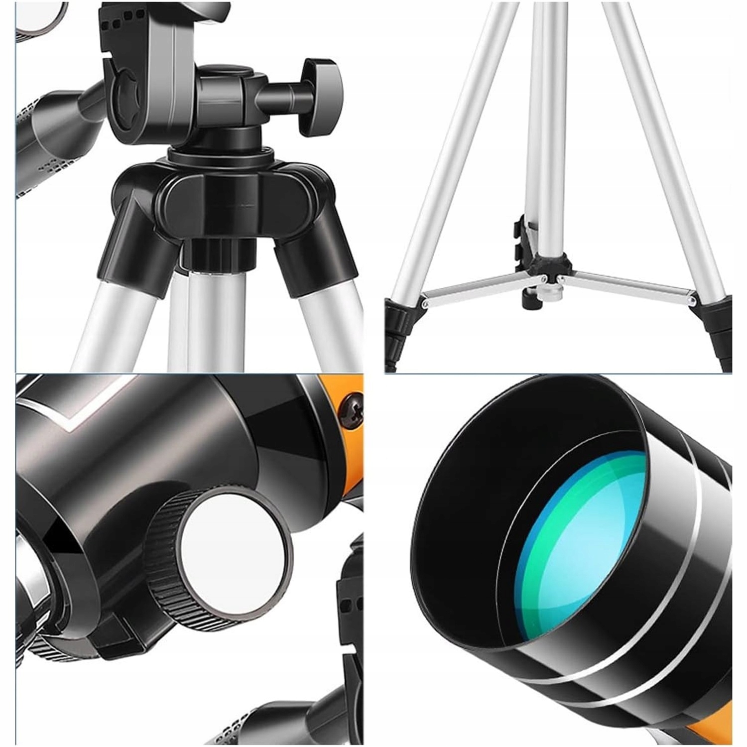 - Оснащений об’єктивом з великою апертурою 70 мм і фокусною відстанню 300 мм довжини, наш астрономічний рефракційний телескоп забезпечує чіткіше та яскравіше зображення порівняно з іншими телескопами з малою апертурою.