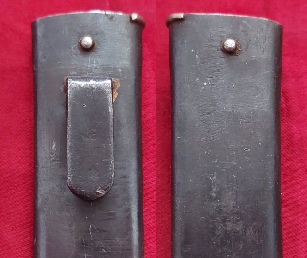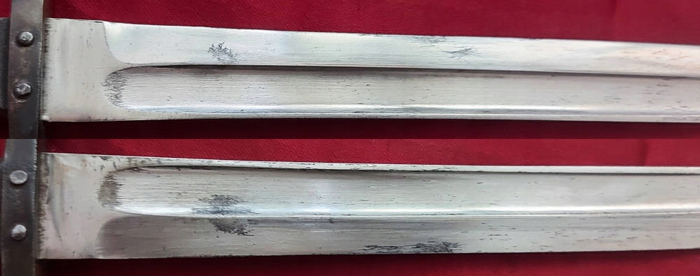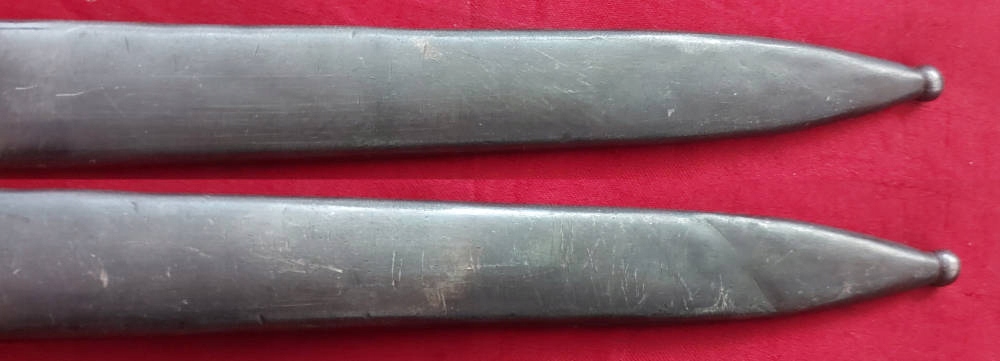 Копія, видна на фотографіях. Чудово збереглися. Лезо, не торкалося. Обшивка ручки дерев’яна, оригінальна. Замок Bayonet функціональний.