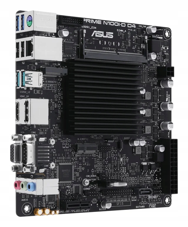 ASUS PRIME N100I-D D4. Виробник процесора: Intel, Роз'єм процесора: NA (інтегрований процесор), Процесор: Intel Processor N. Підтримувані типи пам'яті: DDR4-SDRAM, Максимальний об'єм пам'яті: 16 ГБ, Тип слота пам'яті: SO-DIMM. Підтримувані інтерфейси жорсткого диска: M.2, SATA III, Підтримувані типи дисків: HDD & SSD. Тип інтерфейсу Ethernet: Gigabit Ethernet. Призначення: ПК, Тип плати: mini ITX, Сімейство плат із чіпсетами: Intel