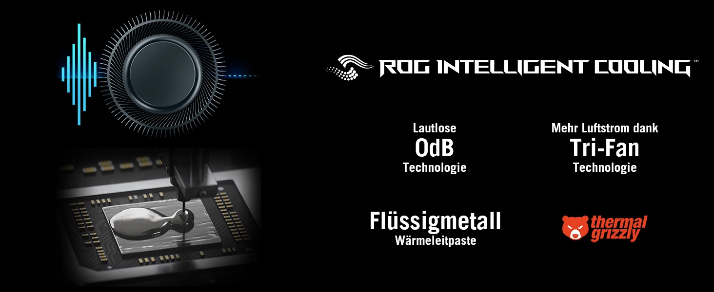 ✔️ Інтелектуальне охолодження ROG із технологією трьох вентиляторів і дуже широким радіатором