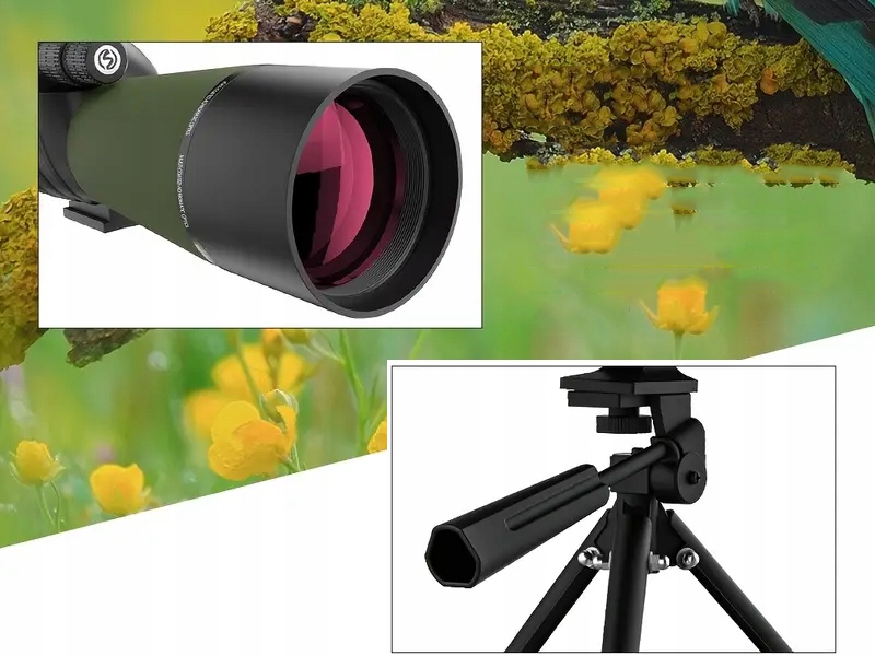 штатив забезпечує більш стійке спостереження під будь -яким кутом. Корпус, чохли для окулярів та об'єктива, прибирання тканини полегшує передачу та обслуговування.