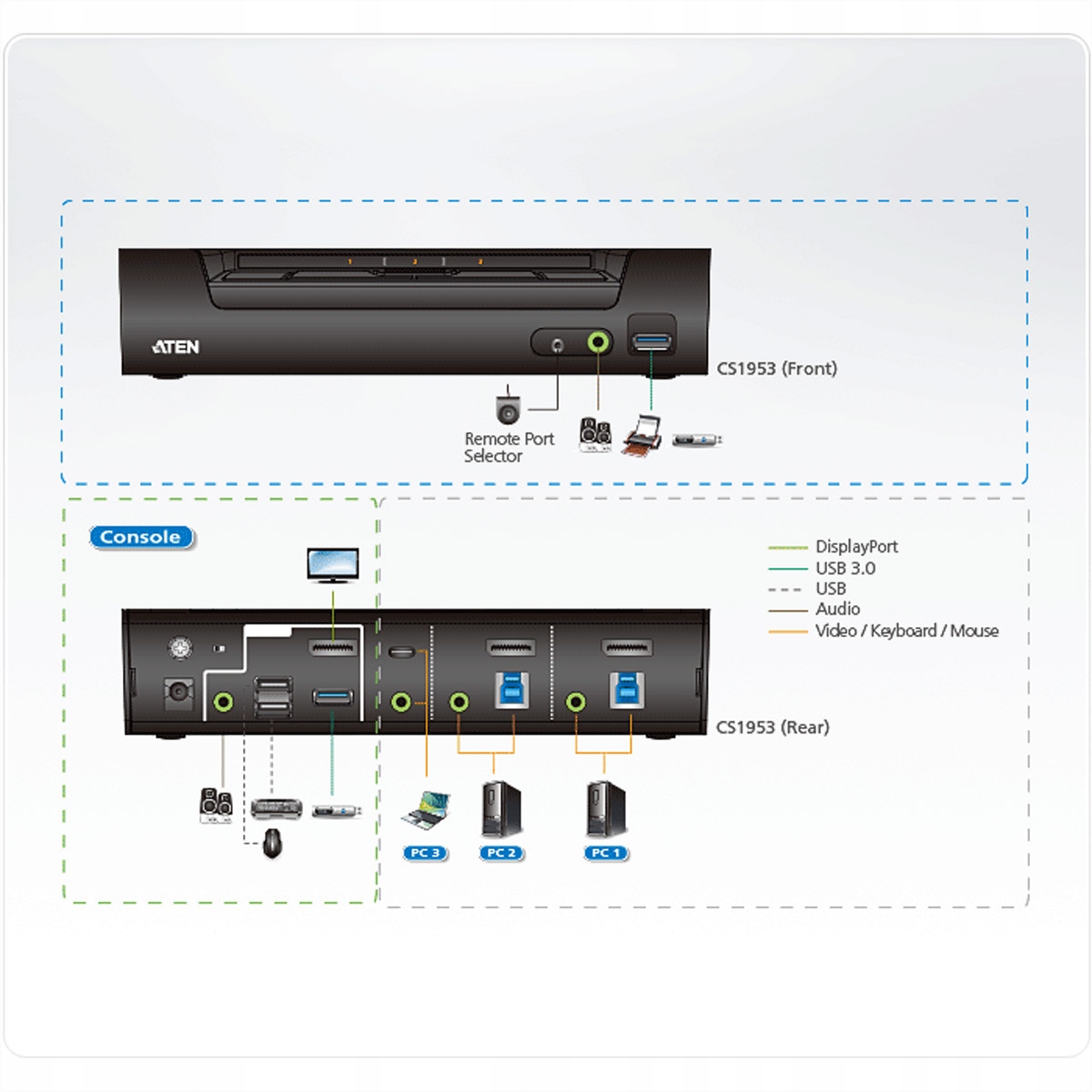 ATEN CS1953 3-портовий гібридний USB-C DisplayPort KVM