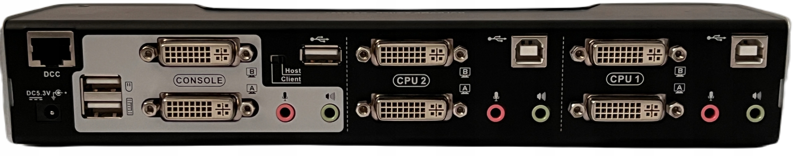 - 2-портовий двоекранний перемикач DVI KVMP із підтримкою Об’ємний звук передачі каналів USB 2.0 і 2.1