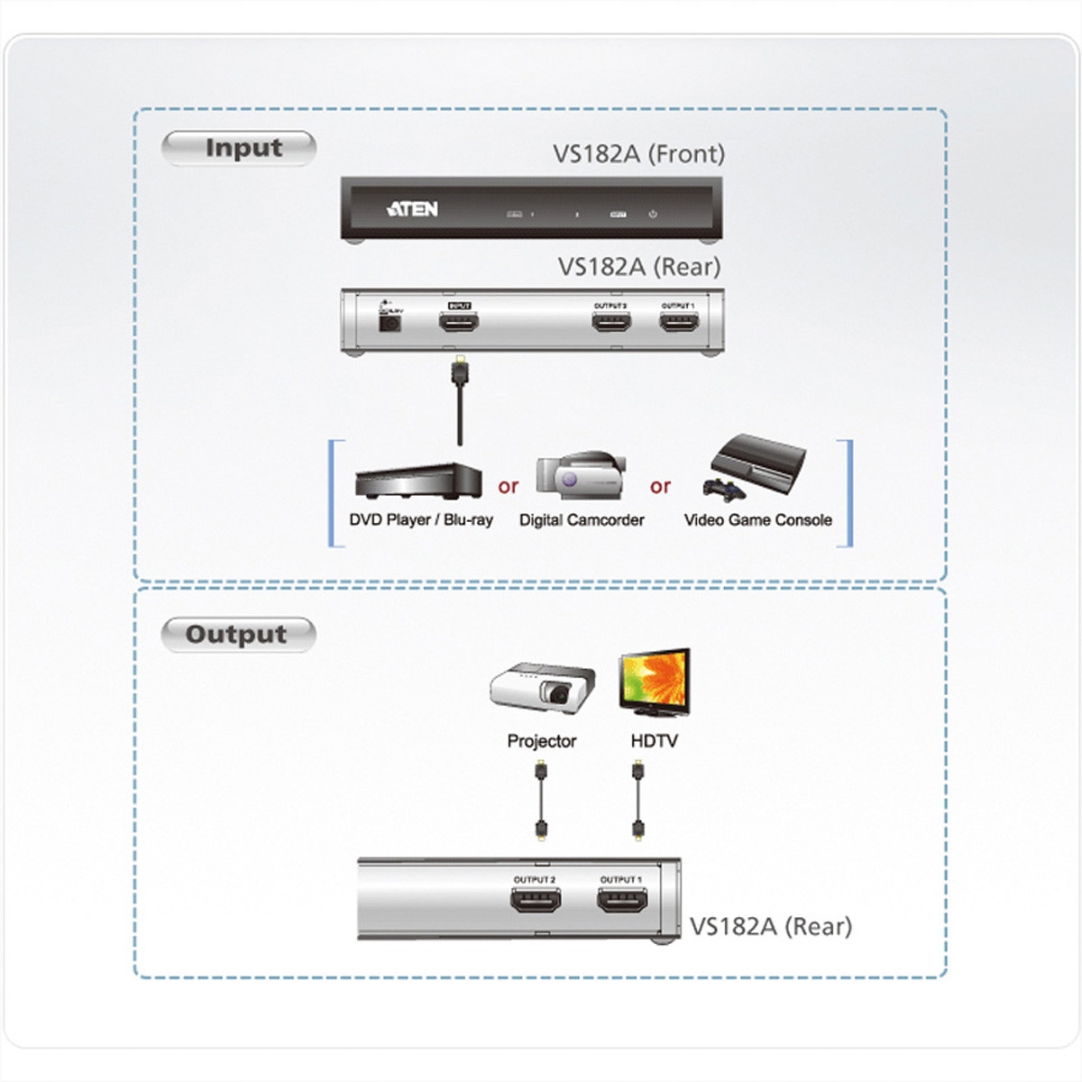 ATEN VS182A HDMI HighSpeed 2-портовий відеорозгалужувач