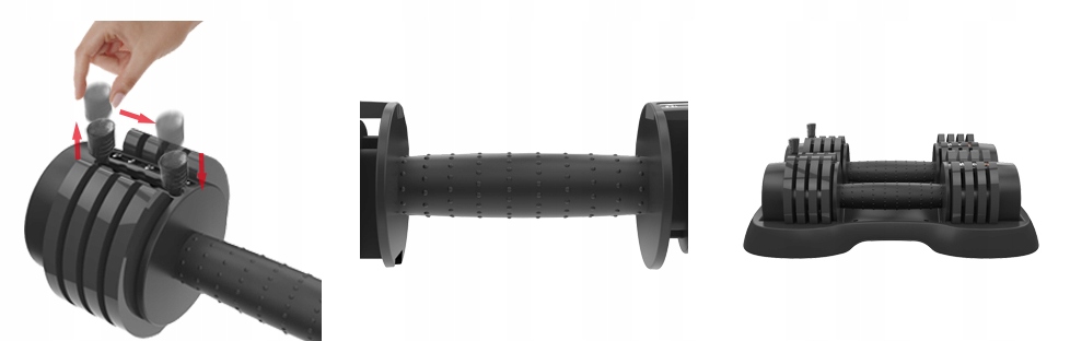 Швидка та легка зміна вагиЛише одним натисканням і переміщенням ви можете змінити налаштування ваги, ви можете миттєво змінити від 1 ,1 до 5,67 кг. Кожну гантель можна відрегулювати до 5,67 кг з кроком 1,1 кг - загальна вага двох гантелей становить 11,34 кг