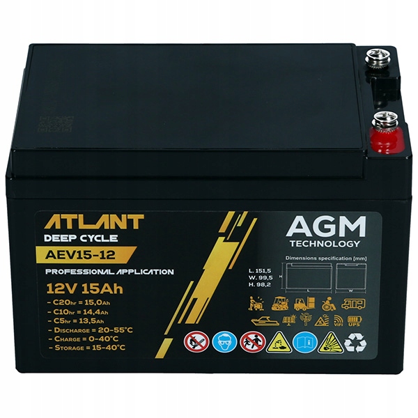 Atlant Deep Cycle 12V 15AH AEV15-12 151*99*99 M5 - 3,9 кг акумулятор