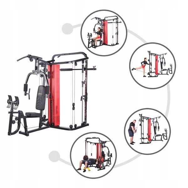 ATOM надає користувачеві кран Smith, два підйомники з регульованою висотою, жим, який легко трансформується в батерфляй, жим ногами, штанга для підтягувань. Усі компоненти дозволяють виконувати вправи для кожної групи м’язів, що робить ATOMA справді комплексним пристроєм. До виробу додається додаткове обладнання у вигляді ручок для блоків, що зробить тренування більш ефективним.