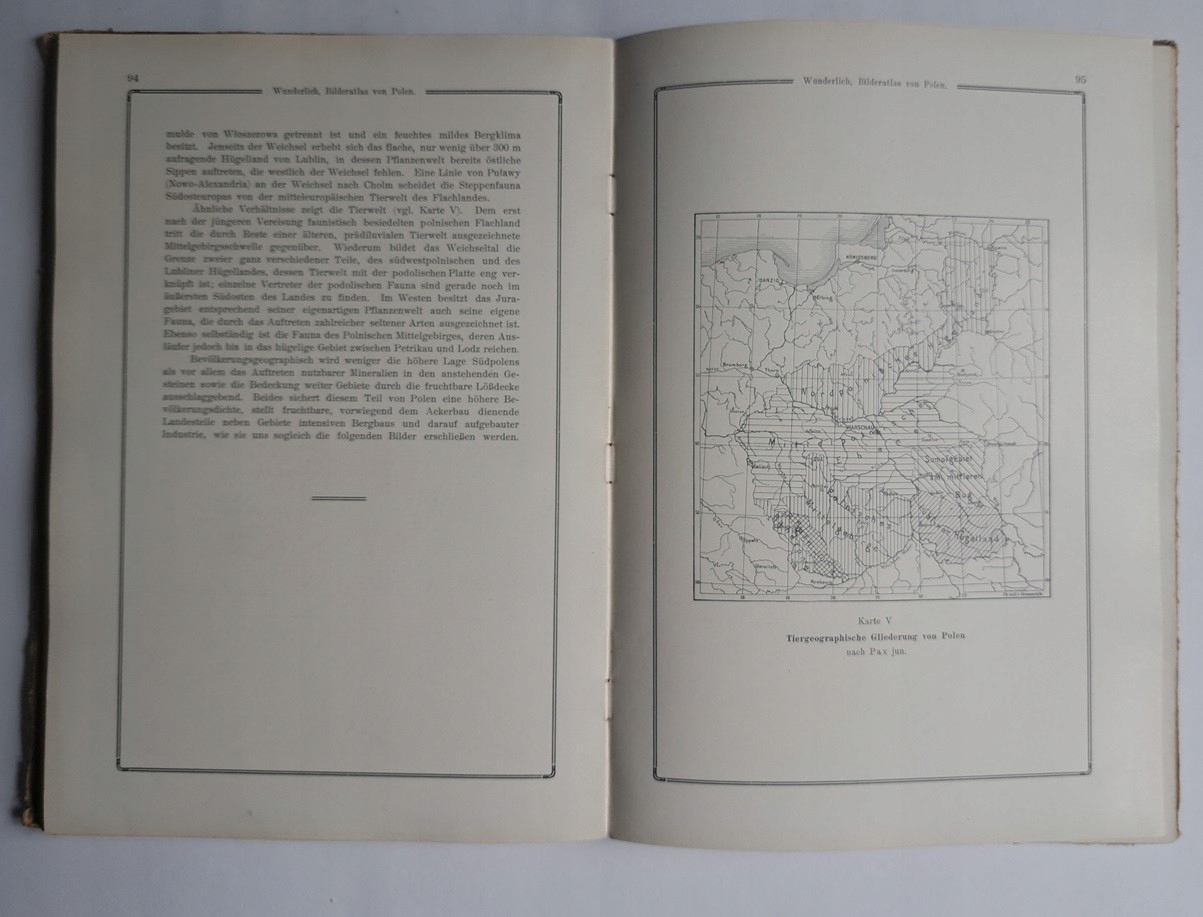Географічний атлас Польщі зі 100 оригінальними фотографіями та 6 картами, які показують, серед іншого, карту опадів і карту місцевості. Додатково розкладний аркуш із зображенням «Західної Русі» в масштабі 1:100 000. Описи окремих регіонів німецькою мовою