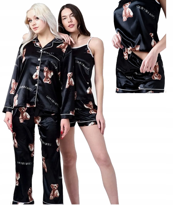 АТЛАСНА ПІЖАМА ЛІТО/ЗИМА ВЕДМЕДКИ ТЕДДІ розмір M подарунок РІЗДВЯНИЙ НАБІР САНТИ 7 предметів