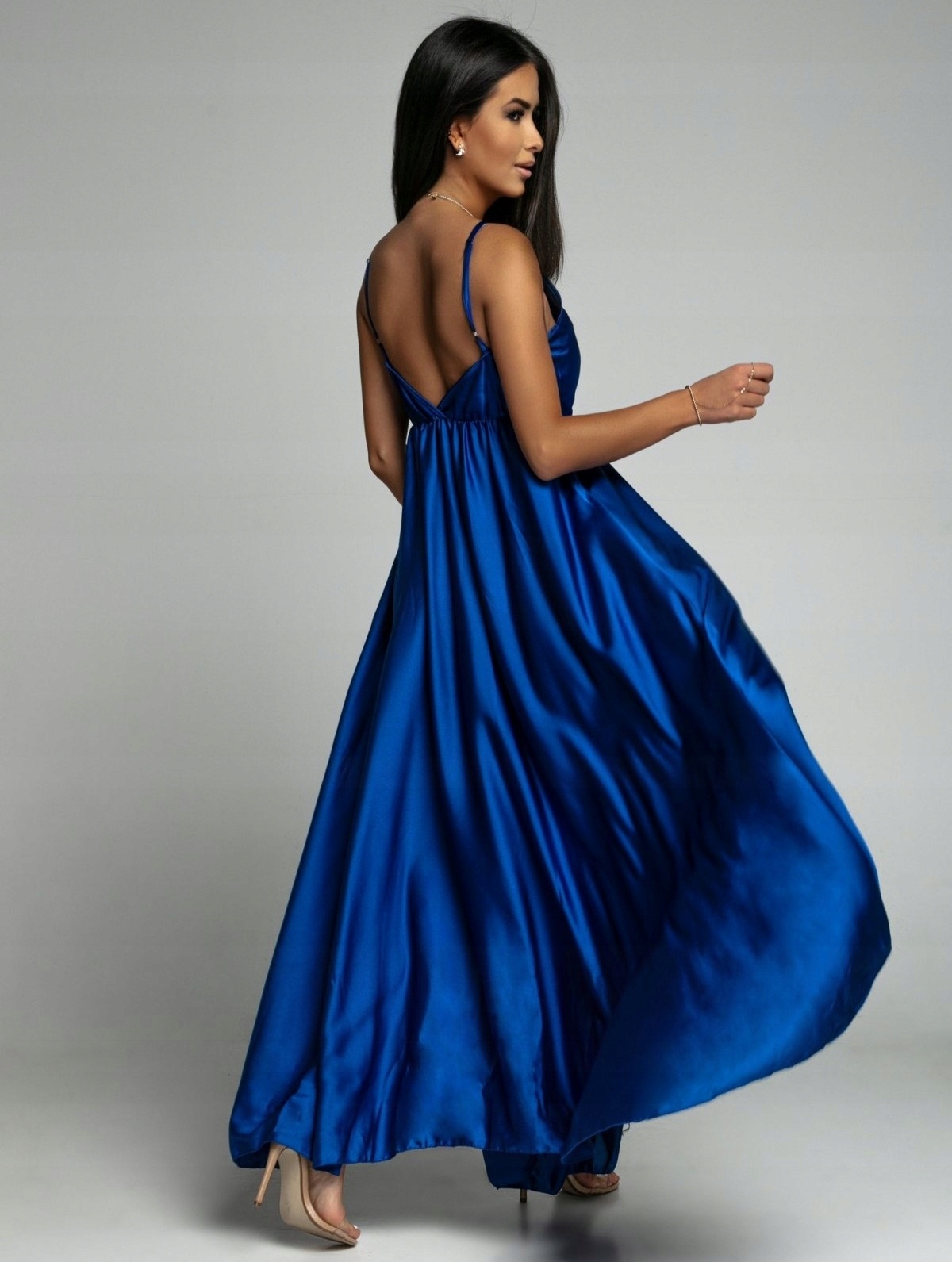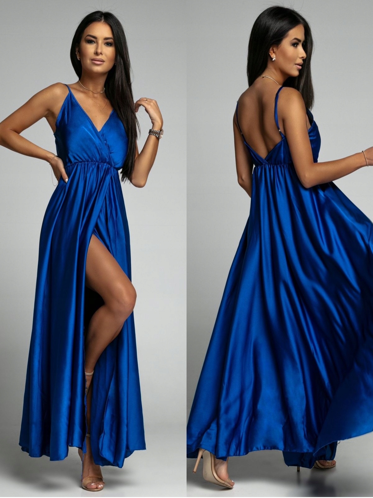 АТЛАСНА ДОВГА БЛАКИТНА СУКНЯ НА НОВОРІЧНИЙ РІЗДВЯНИЙ МАКСІ