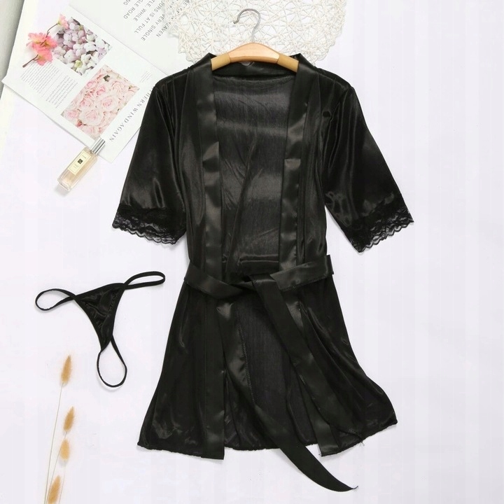 АТЛАСНИЙ ХАЛАТ МЕРЕЖИВО PETTIME, G-STRING+ПАЧОХИ