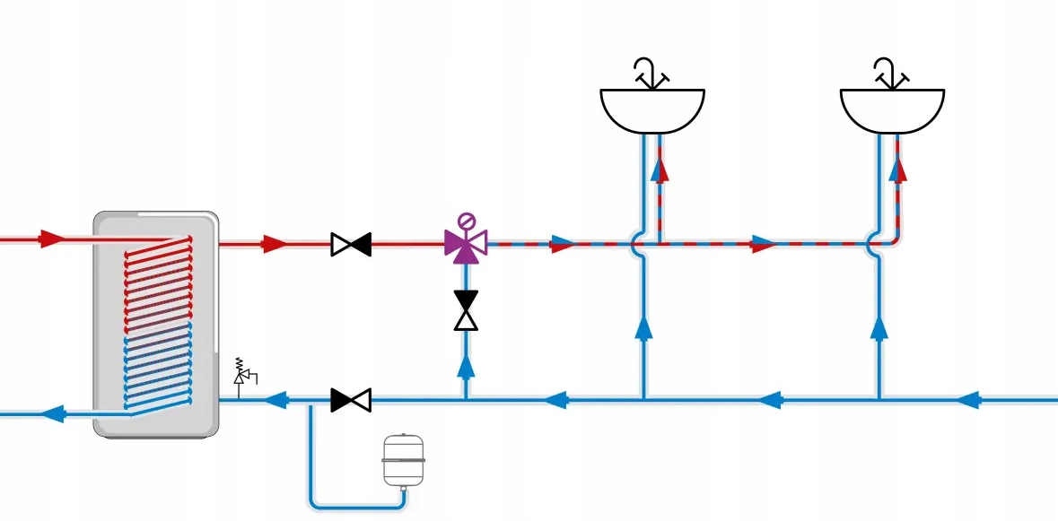 ⭐ Підтримує постійну встановлену температуру води за клапаном.