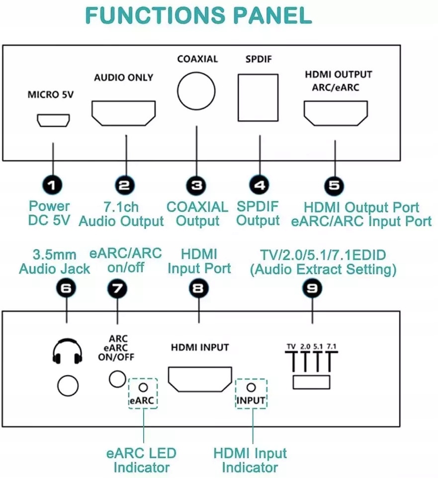 Витягувач HDMI ARC підтримує типові джерела HDMI , як-от консоль, ноутбук, Blu-ray тощо, а також джерела HDMI ARC і eARC, як-от телевізори. Завдяки одному пристрою ви отримуєте багато можливостей, що зменшить кількість конвертерів, підключених до обладнання.