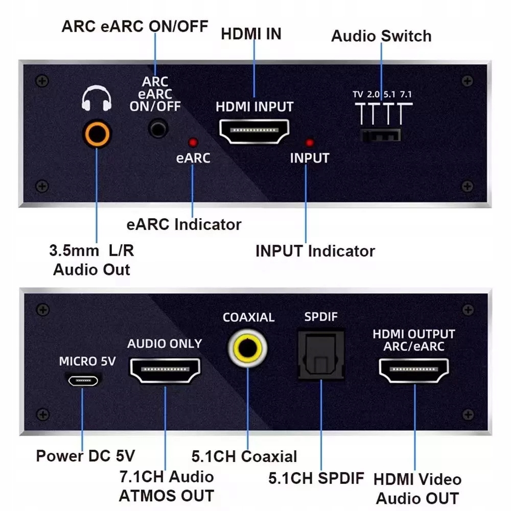 Аудіоекстрактор ATMOS із підтримкою ARC/eARC із HDMI 4K: аудіо з HDMI до HDMI, Toslink, коаксіальний і роз’єм 3,5 мм