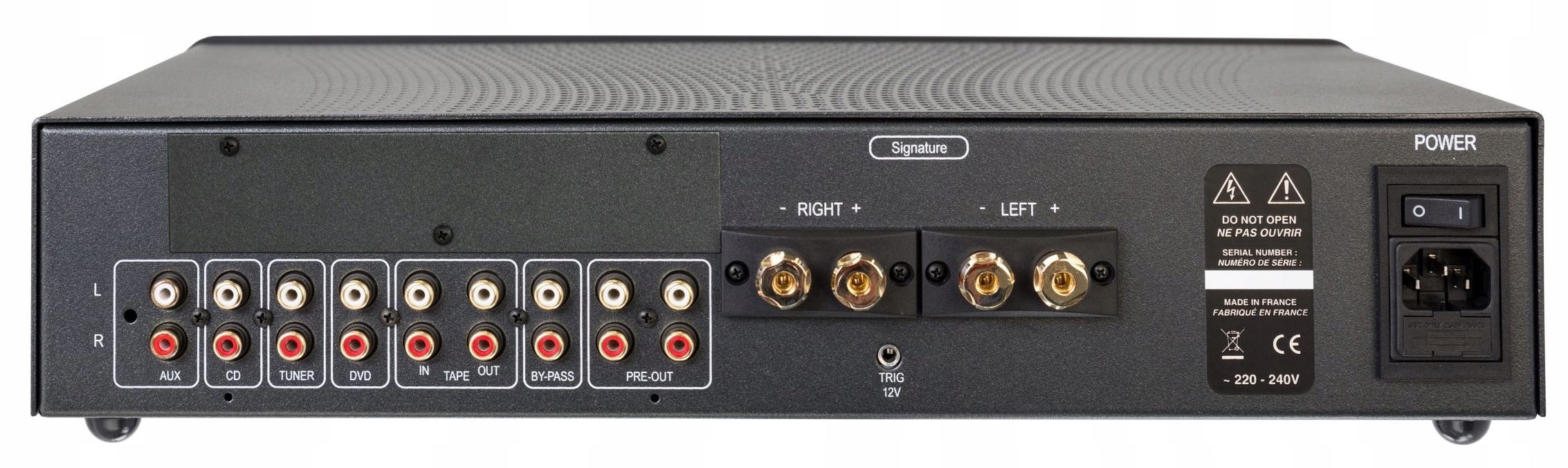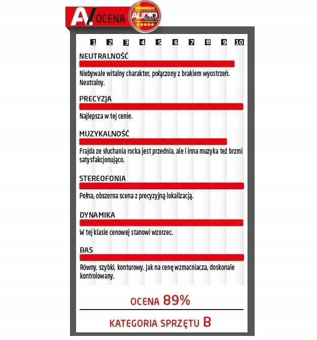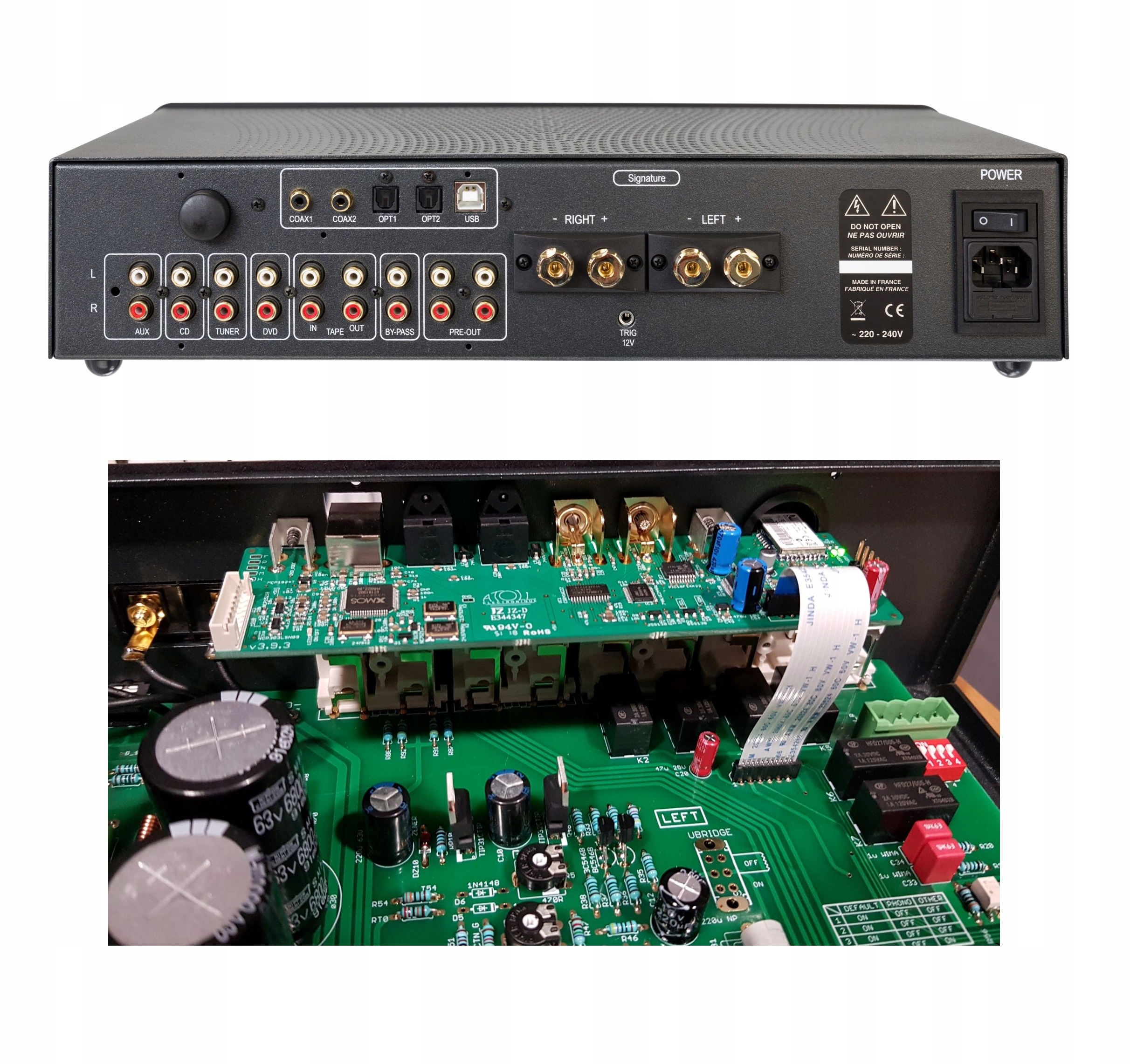Друкована плата з подвійним золото-нікелевим шаром на окремих компонентах, тепловий захист, з’єднувальні конденсатори MKP, моторизований потенціометр ALPS, висока ефективність і висока -продуктивні радіатори. Стильний, мінімалістичний дизайн, складна електроніка, заснована на ретельно підібраних компонентах.