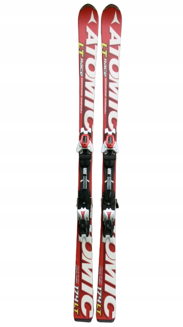Лижі б/у з колекції сезону 11/12 ATOMIC RACE LT, довжина 174см; бічний виріз 121,5-74-105, радіус повороту 16м; з кріпленнями ATOMIC XTO12 (діапазон 4 - 12), довжина корпусу черевика 257 - 380 мм.