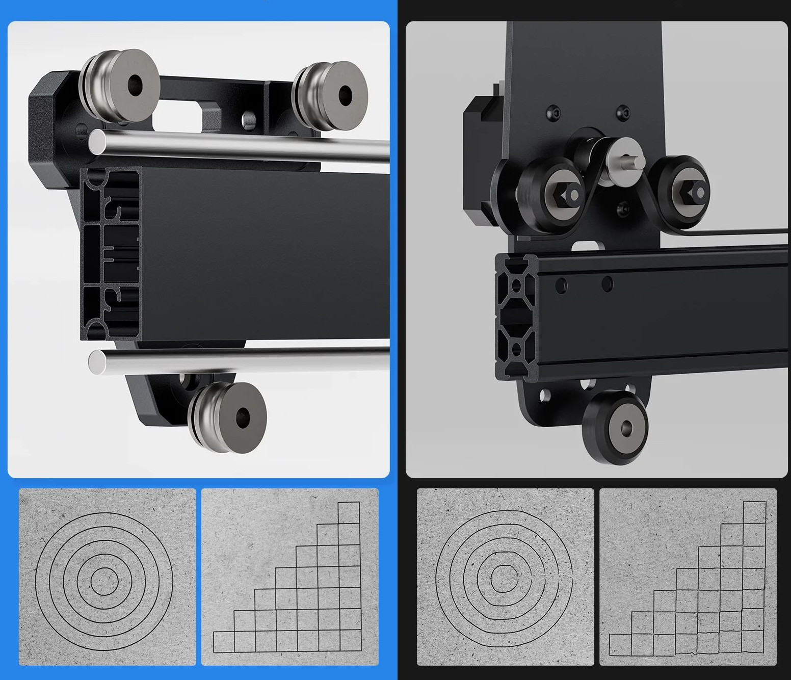Покращений привід на двох подвійних валах і з металевими роликами замість стандартного на основі пластикових профілів і роликів підвищує стабільність, точність і довговічність.