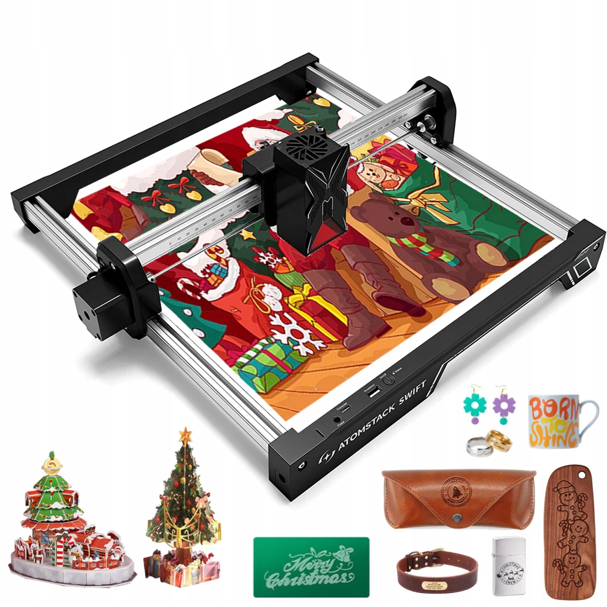 Лазерна гравірувальна машина ATOMSTACK Swift 12 Вт, швидкість 10000 мм/хв, точність 0,1 мм, лазерна пляма 0,08 x 0,04 мм, робоча зона 300 x 300 мм, автоматичне розпізнавання аксесуарів, сумісність з деревом/шкірою/акрилом