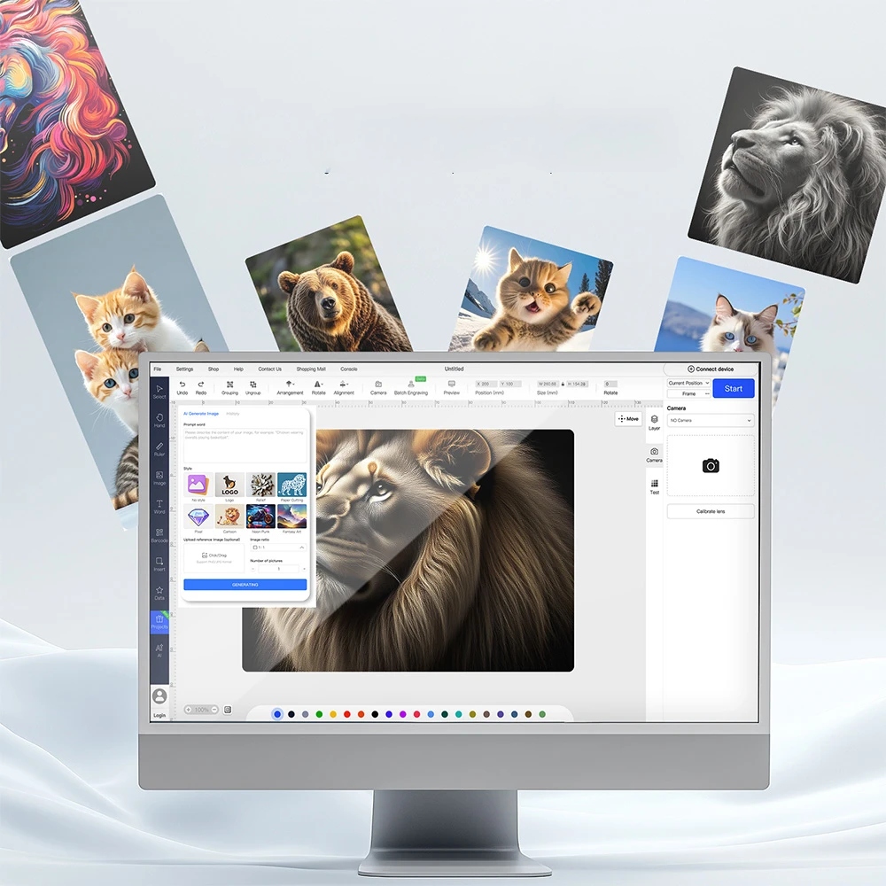 Оснащена найновішим інтелектуальним програмним забезпеченням AtomStack, система пропонує генерацію зображень AI, яка миттєво перетворює текст на дизайн. Вбудована бібліотека матеріалів і дизайну надає різноманітні шаблони для швидкого створення, а попередньо встановлені параметри оптимізують результати гравіювання для популярних матеріалів. Пристрій автоматично розпізнає аксесуари, такі як обертовий або затискний модуль, і перемикається на відповідний режим обробки, підвищуючи ефективність і зручність використання.