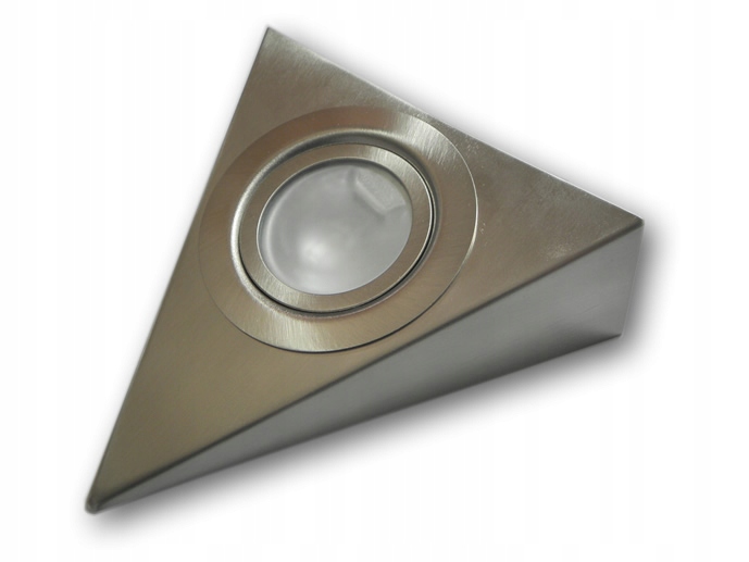 Трикутний точковий світильник зі сталі, без можливості зміни положення джерела світла. Адаптовано до галогенних ламп JC і світлодіодних ламп із роз’ємом G4 максимальною потужністю 20 Вт, які живляться від безпечної напруги 12 В.