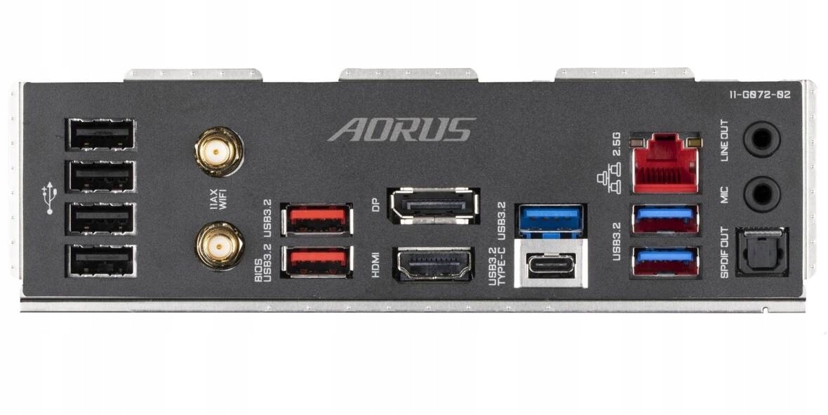 - Зовнішні роз'єми: 1 x usb тип C / 2 x USB 3.2 Gen. 2 Тип A / 3 x USB 3.2 Gen. 1 Тип A / 4 X USB 2.0 Тип A / 1 X RJ45 (LAN) 2,5 Гбіт / с 1 X HDMI /1 x displayport/2 x аудіо-jack/1 x s/pdif/2 x роз'єм антени wifi