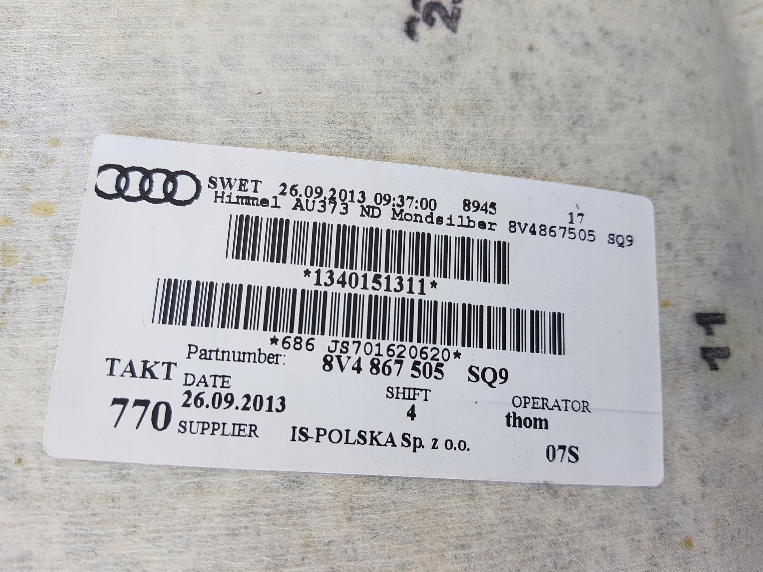 Audi A3 8V 13R- Sportback 5D Headliner