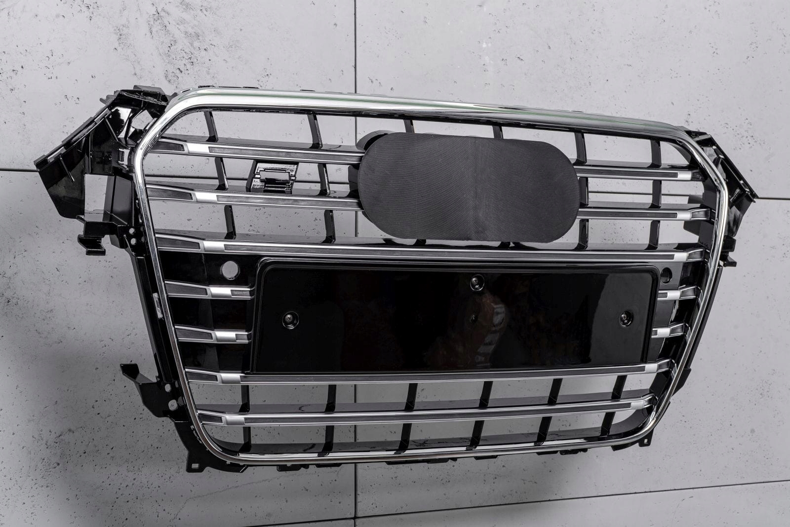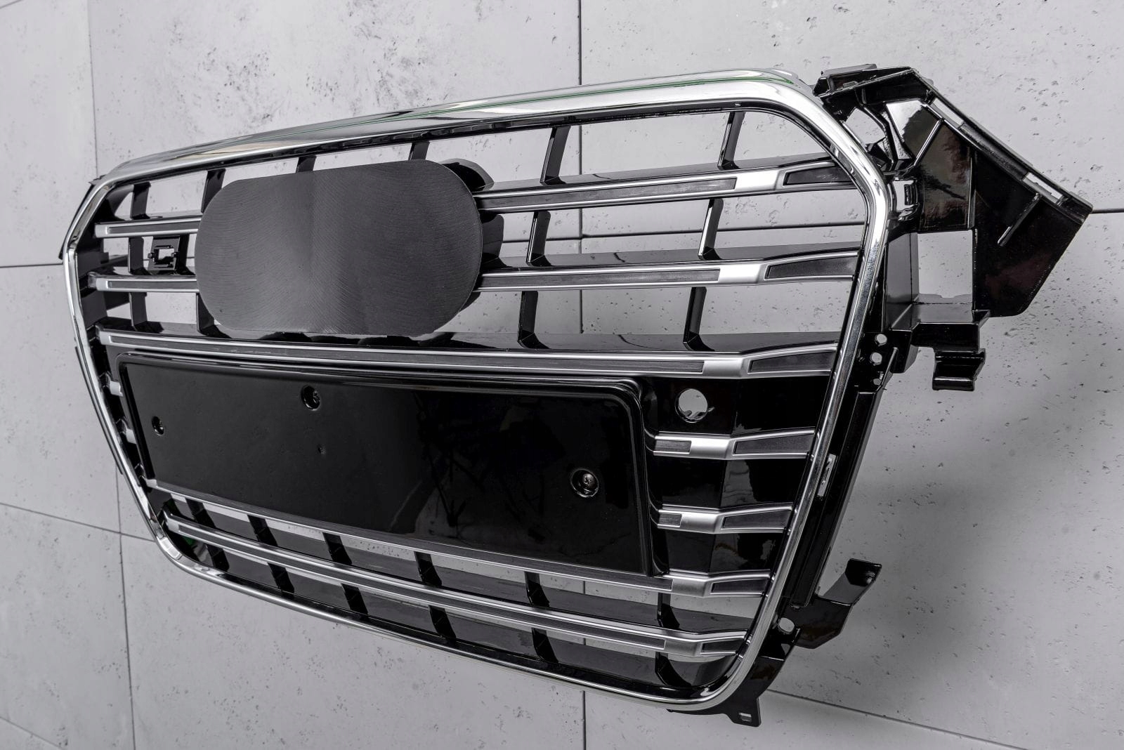 Спеціальна решітка виконана в стилі, типовому для автомобілів S-LINE. Решітка радіатора прикрашена широкими хромованими поперечинами, які неминуче нагадують про респектабельні, потужні автомобілі топ-полиці. Елемент вражає своїм спортивним характером, а глянець хромованих елементів додає елегантності - завдяки чому він ідеально поєднується з вражаючим дизайном AUDI A4.