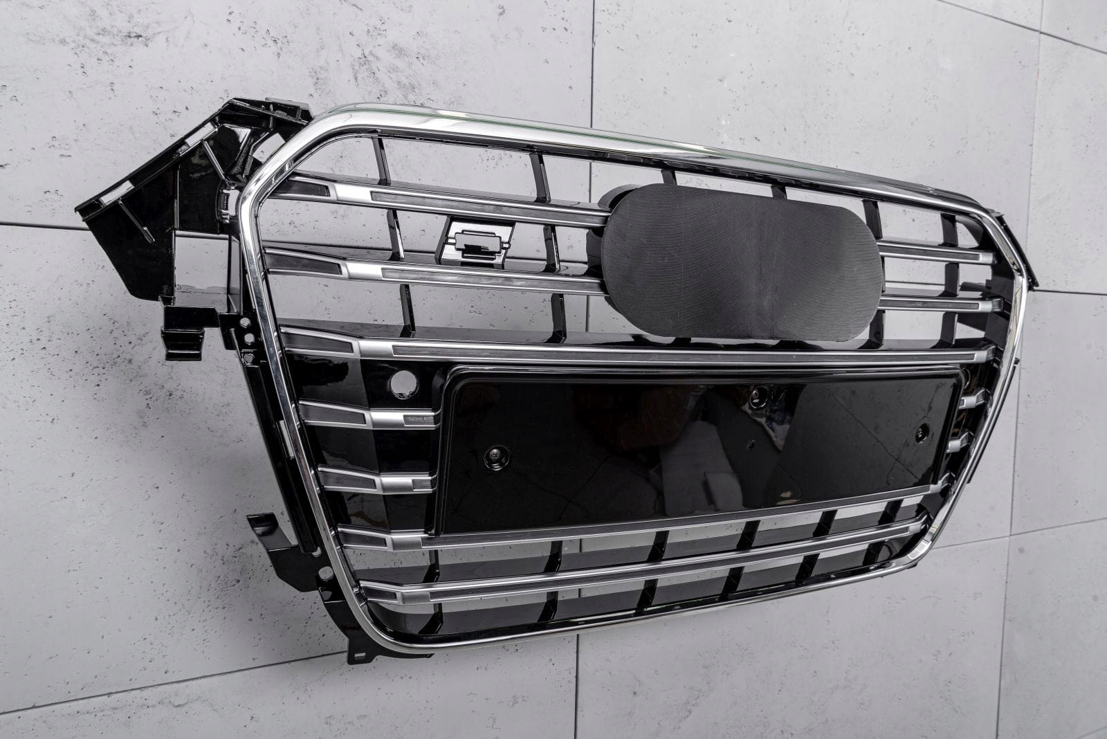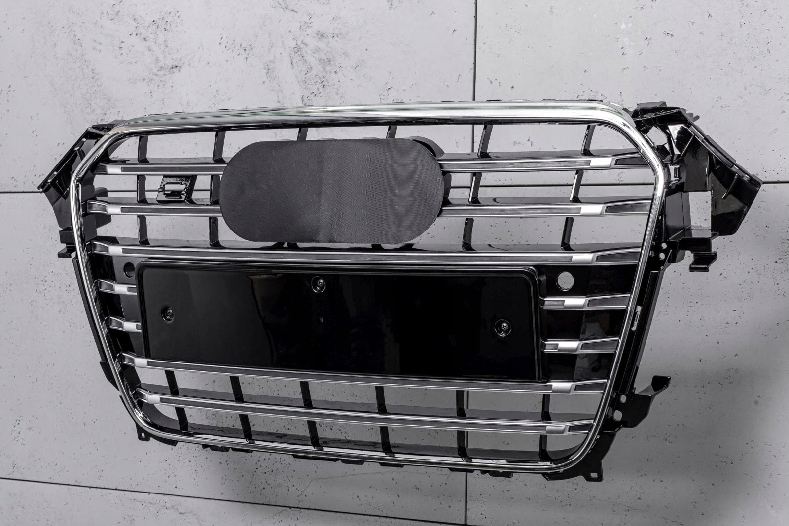Стайлінг решітка, решітка радіатора, хромована, присвячена AUDI A4 (B8) 2011-2015 (версія facelift). Решітка має номерну рамку.