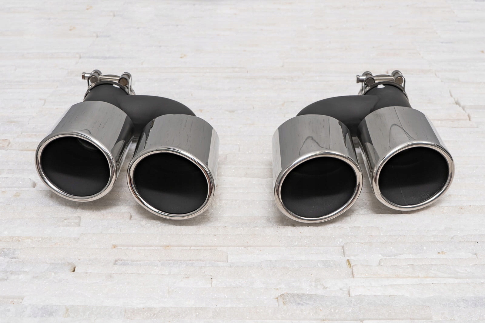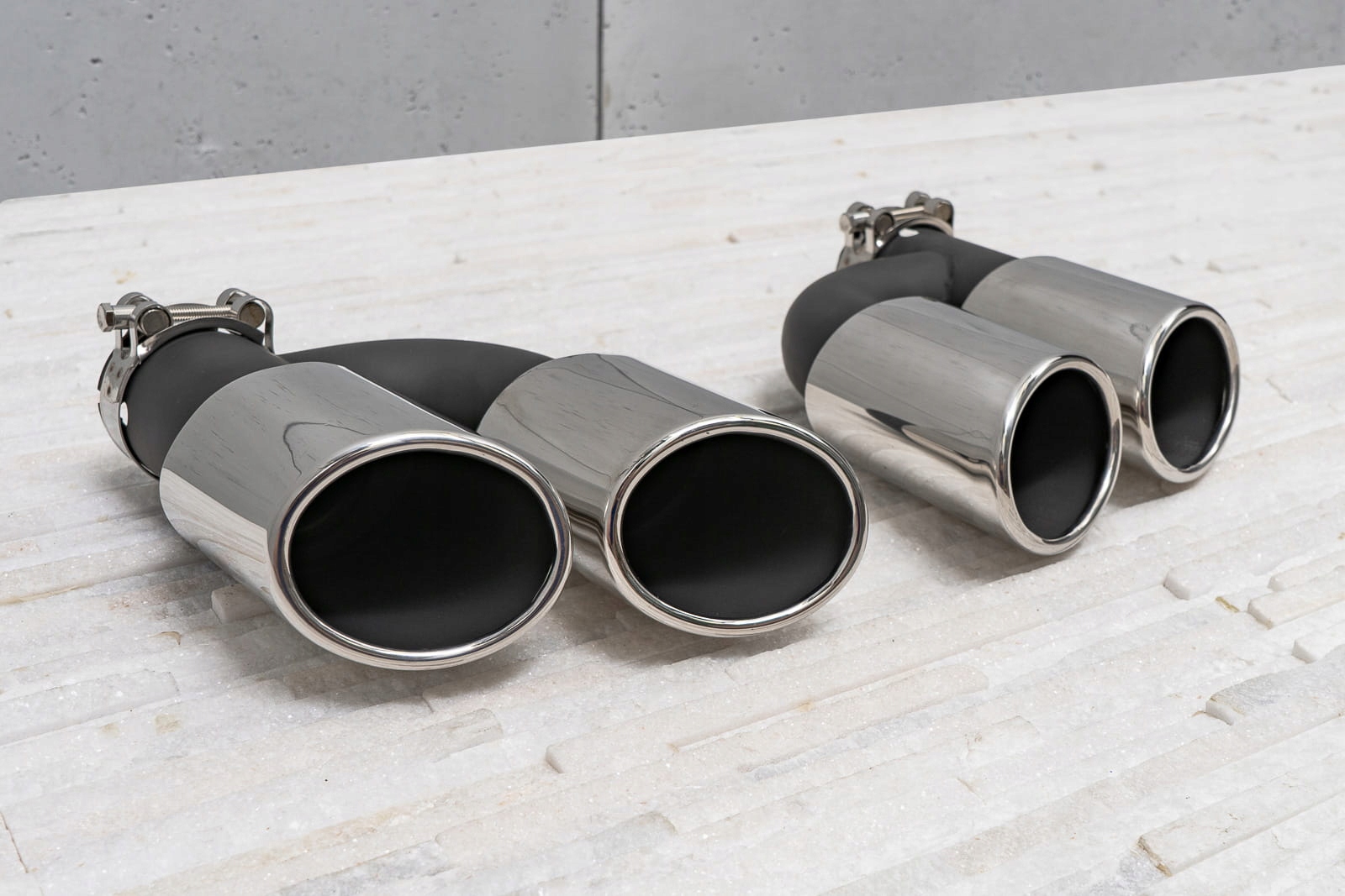Наконечники для тюнінгу вихлопу, розроблені спеціально для AUDI A4 (B9) 2015+. Не підходить для версії S-Line. Поради дозволяють оформити автомобіль у спортивній версії S-Line