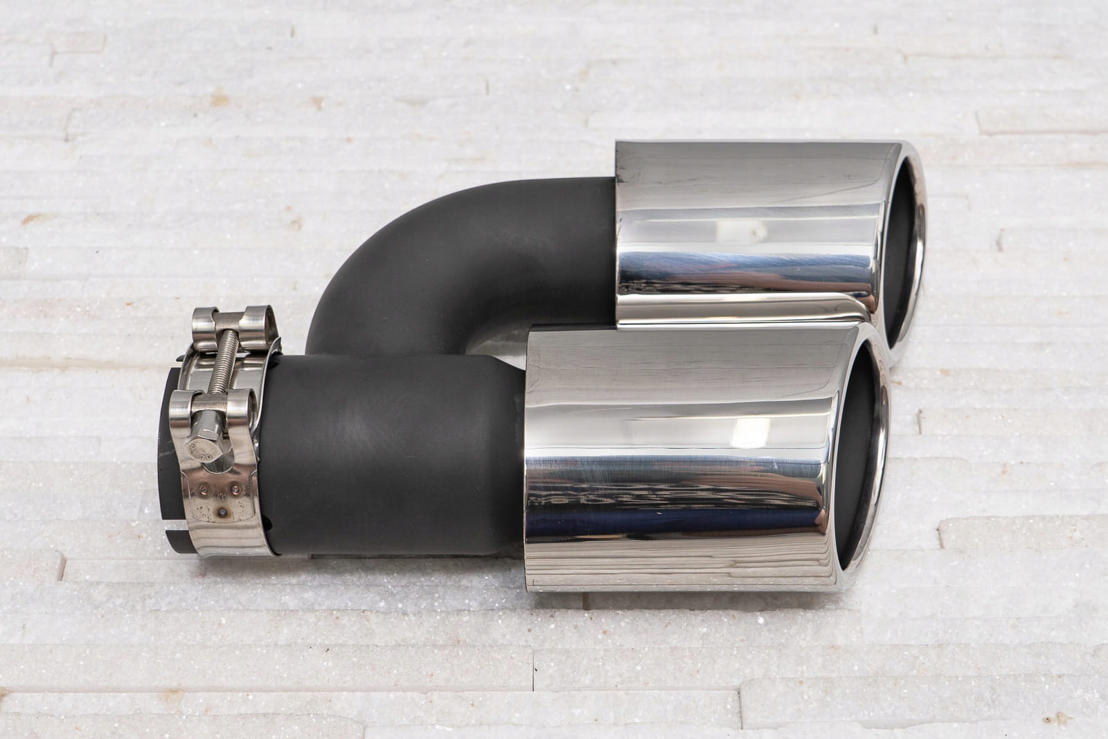 Сталеві тюнінговані наконечники вихлопу були розроблені, щоб ідеально підкреслити характер автомобіля, поєднуючи спортивну потужність із сучасною елегантністю. Витяжний наконечник виготовлений з високоякісної полірованої нержавіючої сталі. Труба виготовлена з чорної сталі з порошковим покриттям. Виріб характеризується найвищою стійкістю до пошкоджень, спричинених погодними умовами, хімічними речовинами тощо.