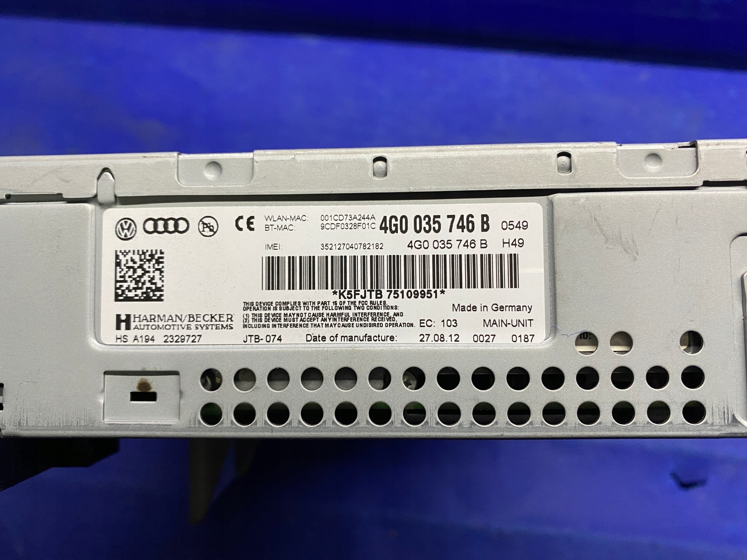 Тема аукціону - мультимедійний підрозділ MMI Harman Kardon, що відповідає автомобілю Audi A6 C7 4G