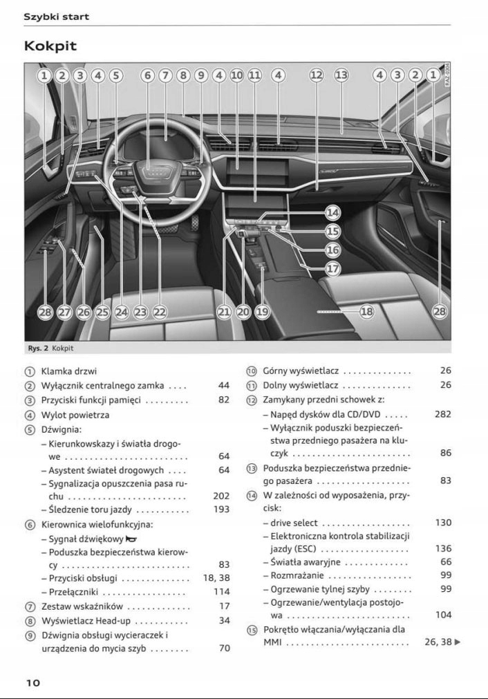 Посібник з експлуатації Audi містить усі версії обладнання та корисну інформацію про те, як ефективно та безпечно використовувати автомобіль, напр. - індикатори, контрольні лампи, відкриття та закриття - освітлення та видимість, сидіння, відділення для речей, опалення, вентиляція, кондиціонування - водіння, поради з експлуатації, технічне обслуговування автомобіля - рівень рідини, перевірка та доливання, аварійні операції, заміна коліс, запобіжників, заміна лампочок - технічні дані... та багато іншого, що дає відчуття безпеки та комфорту мандрівникам. Польське законодавство зобов’язує продавця додавати інструкцію до автомобіля польською мовою. Інструкція до автомобіля нова польською мовою.