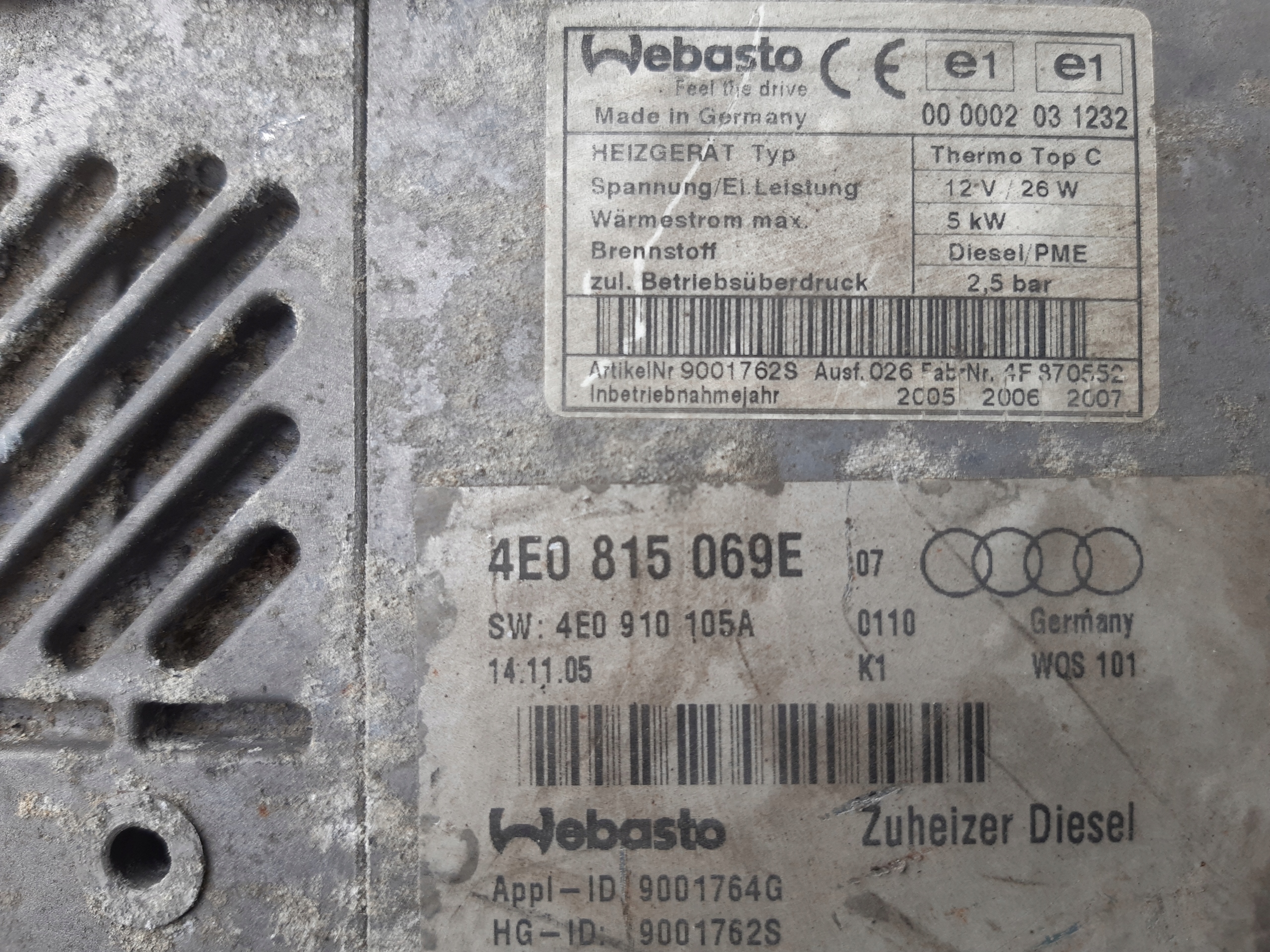 Audi A8 D3 Webasto 3.0 TDI 4.2 TDI 4E0815069E 4E0910105A
