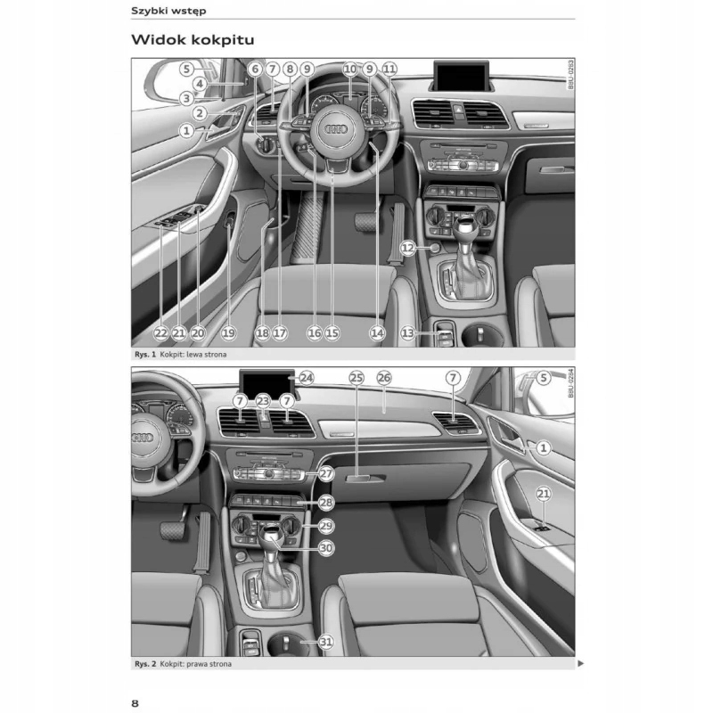Керівництво користувача Audi Audi Q3 facelift 2016 - 2018 рр Q3 і RS Q3 Двигуни, описані в цьому посібнику: дизель 2.0 бензин 1.4, 2.0, 2.5 Сторінок - 232 Стан - новий Тип - книга Польська мова Видання - 2017 рік Обкладинка - кольорова Центр - чорно-білий Папір - крейда матовий А5 149х210
