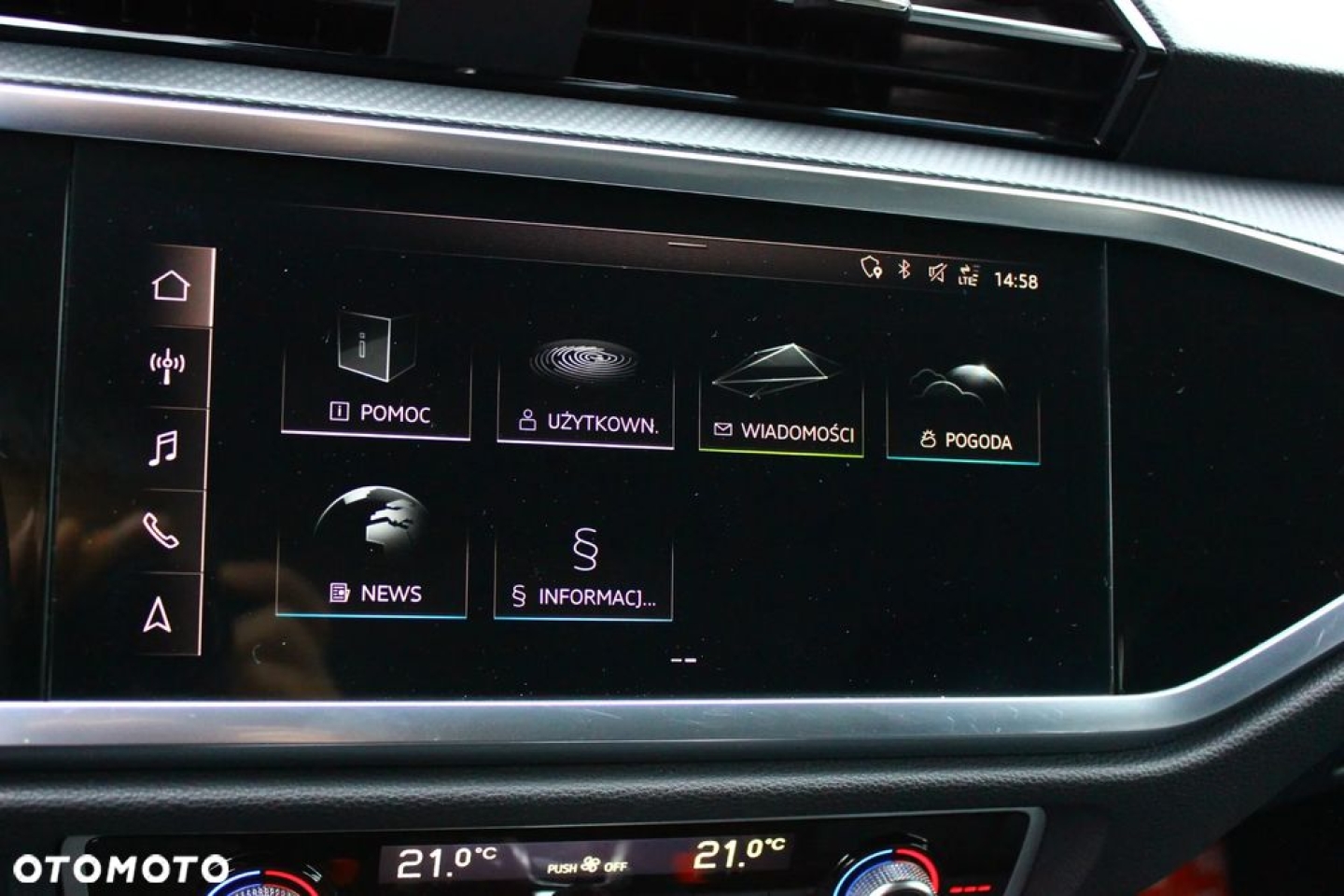 AUDI Q3 3.5TFSI Advanced S tronic 150KM з 2019 року - Пропоную на продаж сучасний позашляховик, автомобіль на польській реєстрації, в дуже хорошому технічному та візуальному стані, готовий до негайного використання. Ідеальний вибір для людей, які цінують комфорт, безпеку та багате оснащення.