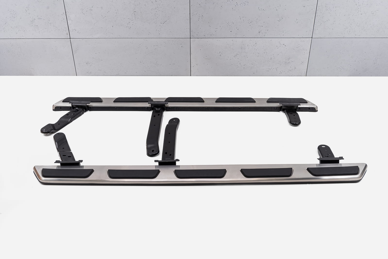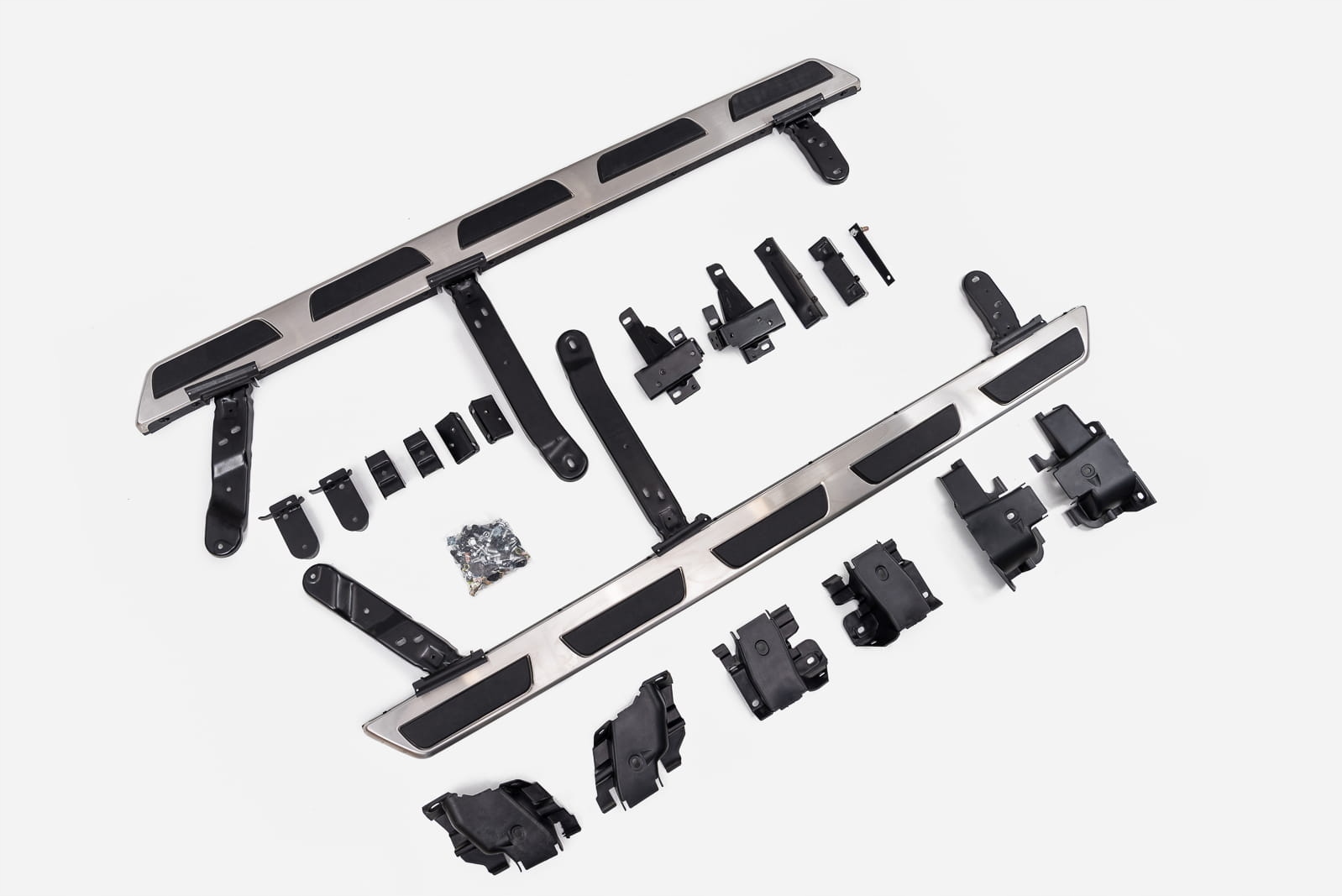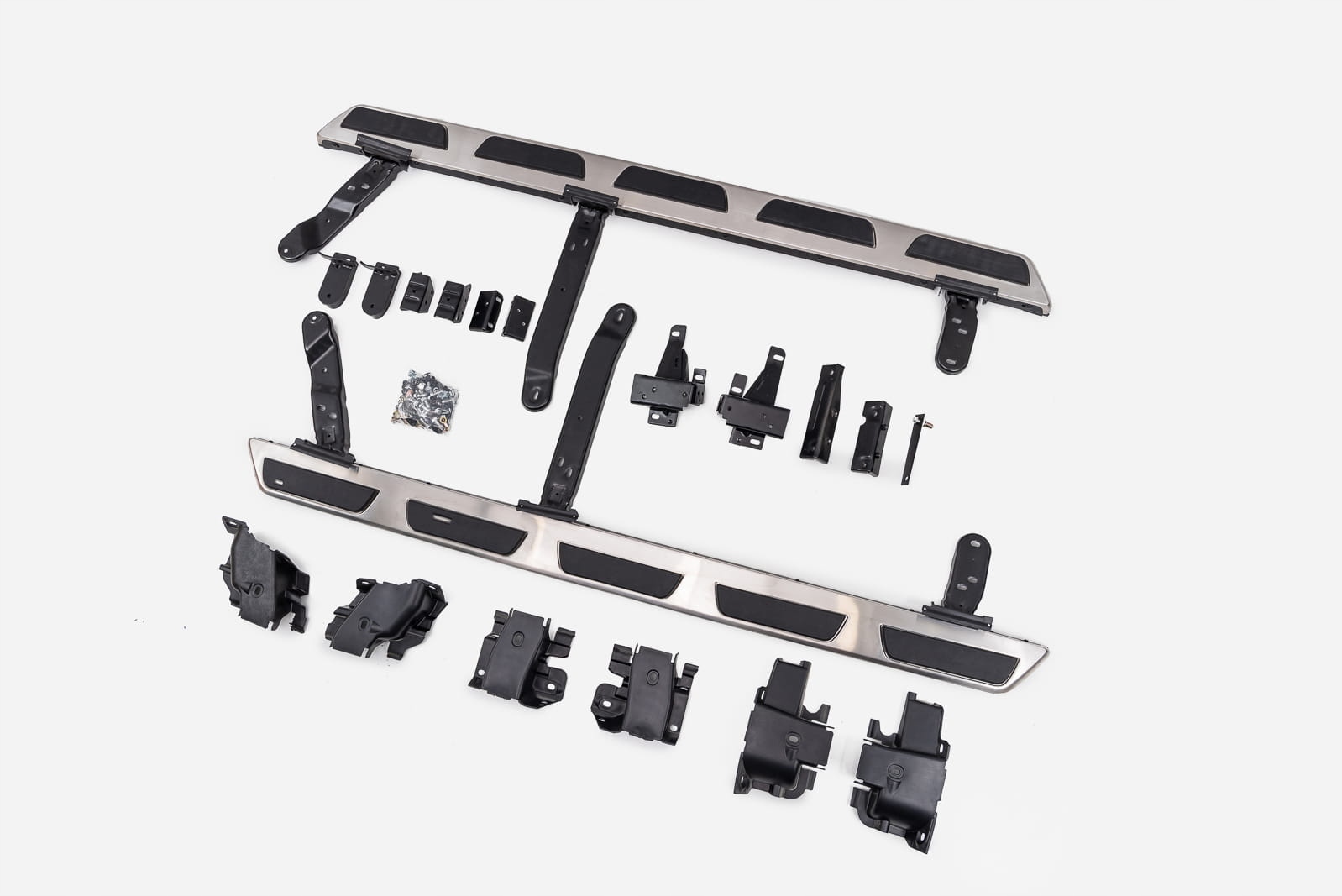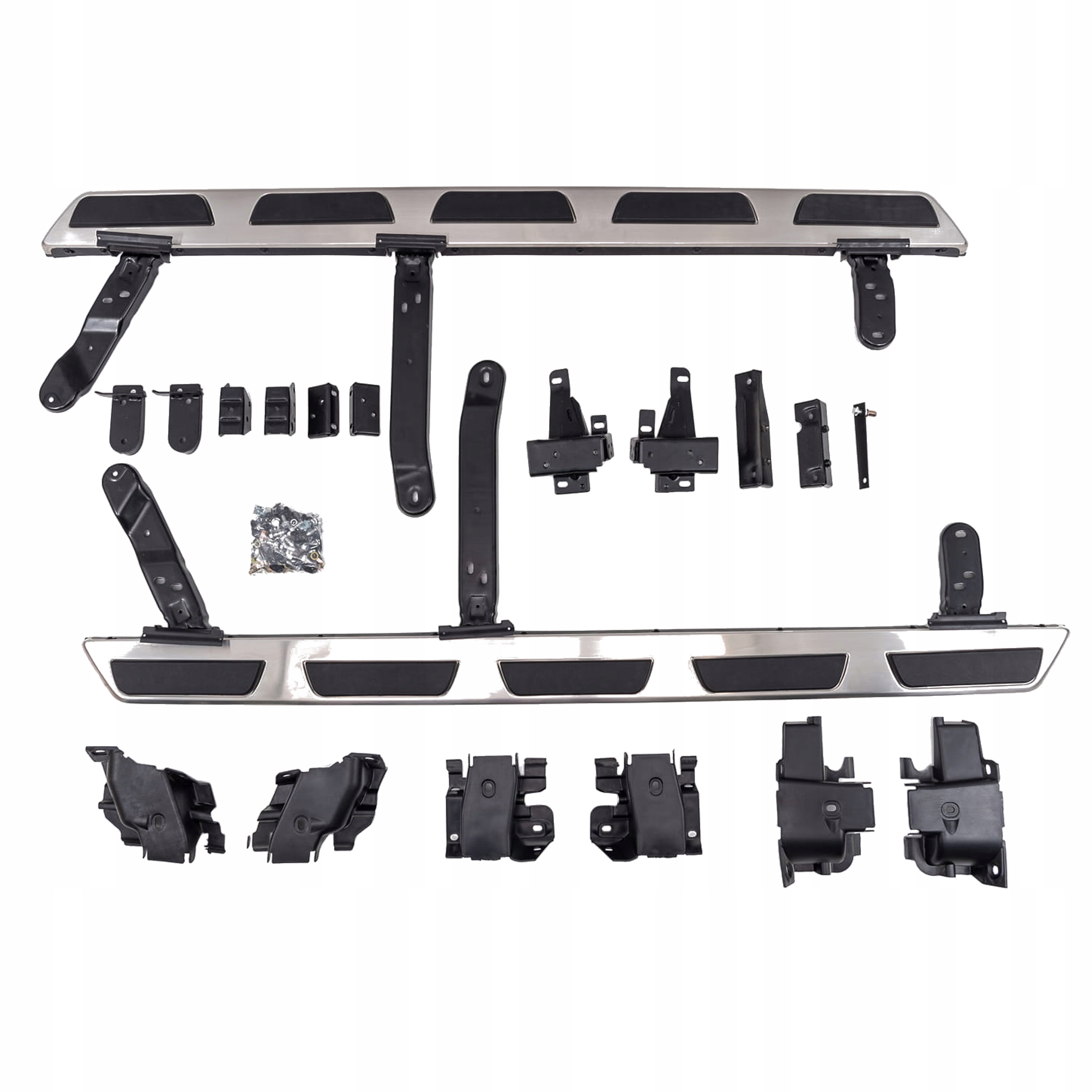 Набір бічних кроків (права та ліворуч), монтажні елементи та інструкції в наборі. Пороги встановлені на заводських точках. Встановлення кроків не вимагає буріння додаткових отворів! Ми рекомендуємо професійну збірку в семінарі ( ми знаємо з досвіду, що Найкраще використовувати послуги фарби або кузова, оскільки ці рослини найчастіше займаються складанням рейсів, доповнень та ступенів, тому збірка для цих рослин інтуїтивна діяльність ).