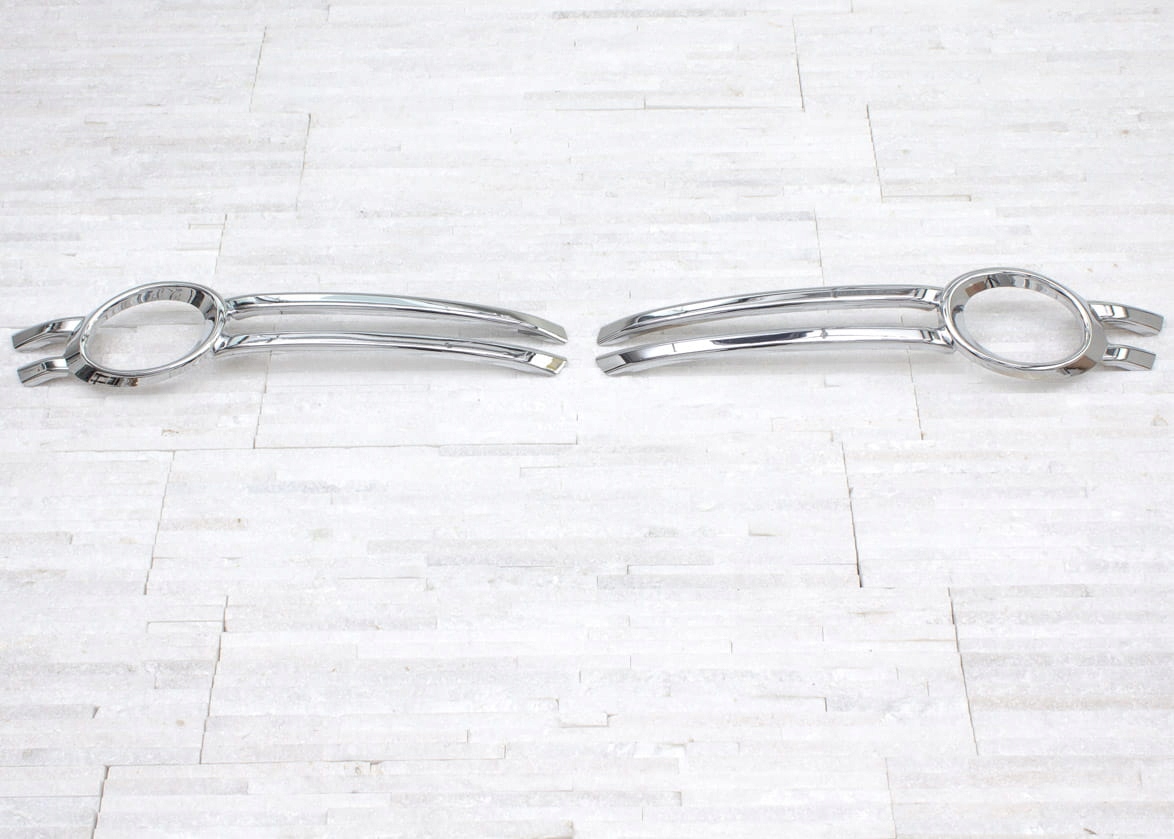 Стилістичні накладки створюють гарне обрамлення для галогенних фар, роблячи їх справжньою окрасою передньої частини автомобіля. Декоративні смуги додатково доповнюють простір з боків світильників елегантним і спортивним акцентом. Завдяки глянсовій хромованій поверхні накладки ідеально відповідають стильному, розкішному стилю AUDI Q5. Виріб виготовлено з високоякісного хромованого ABS пластику.