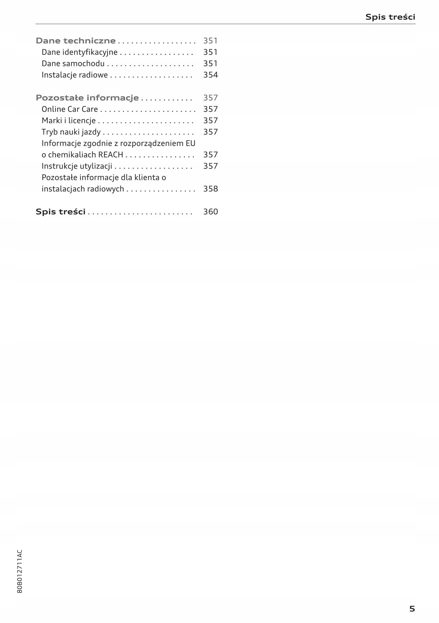 Посібник користувача Audi містить усі версії обладнання та корисну інформацію про те, як ефективно та безпечно користуватися транспортним засобом, лампами, контрольними лампами, відкриттям та закриттям, і видимістю, місцями зберігання, опаленням, вентиляцією, керуванням кондиціонуванням, перевіром та доповненнями, що займаються підтримкою автомобілів, вибухівних технологій, що працюють на основі. ... та багато інших речей, які дають відчуття безпеки та комфорту для подорожей. Закон накладає на продавця зобов’язання прикріпити посібник з автомобіля польським. Посібник автомобіля новий і польський.