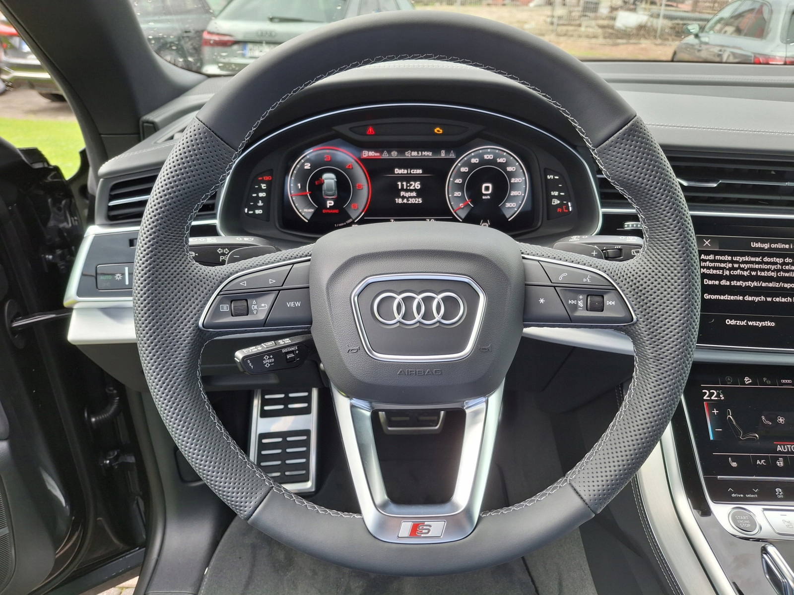 Легкі сплави колеса Audi Sport 10.0jx22 ", 10 -плече, з ущільненими озброєннями, чорним металевим, з шинами 285/40 R22. Корпус одноразового кадру в чорному